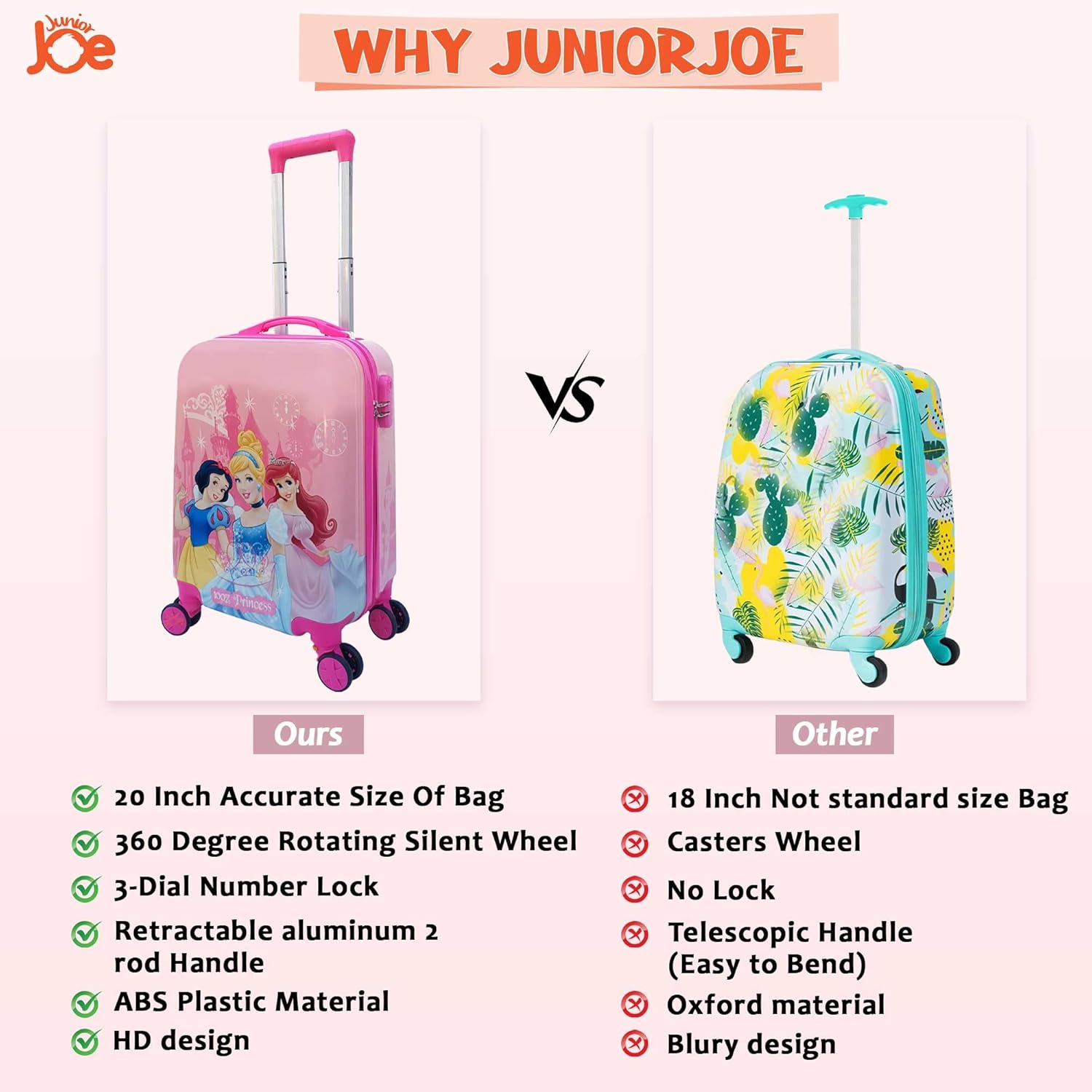 Suitable for your child: The Junior Joe lightweight baby suitcase is cleverly balanced, specially designed for children, ergonomic and flexible in operation. It is the best gift for birthday or holidays, Halloween, Christmas, Thanksgiving and New Year.