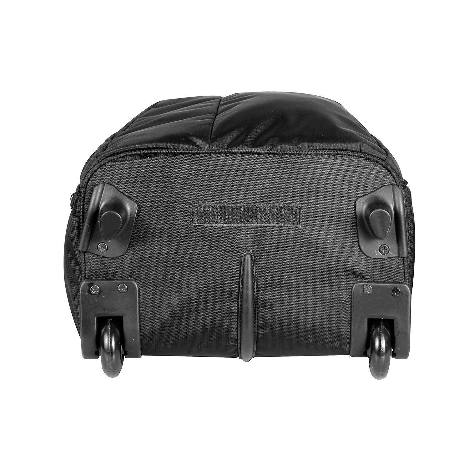 This FBI-Fabco trolley backpack features a multi-compartment design, a fully padded laptop space that fits most laptops, a deluxe media pocket, smooth rolling corner-mounted wheels, a hideaway telescoping handle, air mesh padded shoulder straps, and a primary padded back panel. It has a side pocket to keep suitable accessories and bottles. Features: Large, front-load main compartment and multi-pocket cushioned laptop space that can accommodate most sized laptops. Large, zipped front compartment features media pocket, multiple open pockets and organizer with key fob Zipped accessory compartment Smooth-rolling, corner-mounted wheels Single-tube telescoping handle stays inside a protective zipper compartment Open side pocket holds a water bottle or other gear Corner guards and rub rails protect the bag from abrasion High-quality push button trolley system Warranty – 3 Sal Fabric- Nylon. The handle of the trolley can be easily secured inside when one is using the shoulder straps to carry the bag.