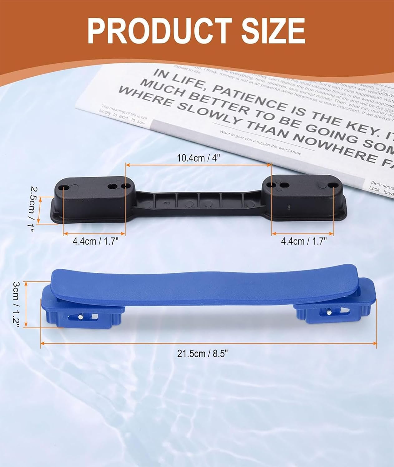 5PCS Replacement Luggage Handle, Trolley Bag Handle Spare Parts for Suitcase Repair, 1 Handle + 4 Screws, Durable Solution for Business Travelers and Travel Enthusiasts Essential Replacement Handle: Designed to replace damaged suitcase handle; The sturdy construction ensures reliable performance while on the go; Suitable for frequent business travelers and travel enthusiasts Good Material and Design: Made of good material for long-term use; Ergonomic design provides comfortable grip; Ideal for upgrading or repairing your suitcase handle Easy Installation Process: Includes 4 screws for quick; Simple design allows for hassle-free replacement of old or broken handles; No special tools required for setup Universal Compatibility: Fits most standard luggage and suitcases; The blue color blends seamlessly with various accessories designs; Perfect spare part for emergency repairs during trips Practical Travel Solution: Essential to maintain luggage functionality; Provides a reliable handle replacement option; Great for travelers who need a durable suitcase handle replacement
