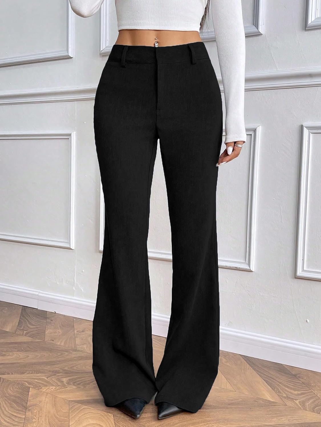 Flared leg pant with wide elastic waistband, split hemline, long length, beautiful color options