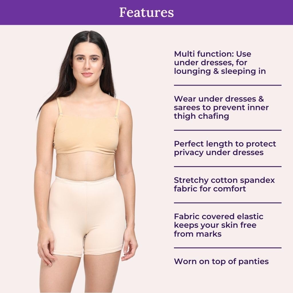 Customers find these shorts to be of good quality, with a perfect length that works well under dresses. They are comfortable, stretchable, and soft, and customers consider them worth their price. The fabric quality receives mixed feedback – while some find the material good, others say it’s not good enough.