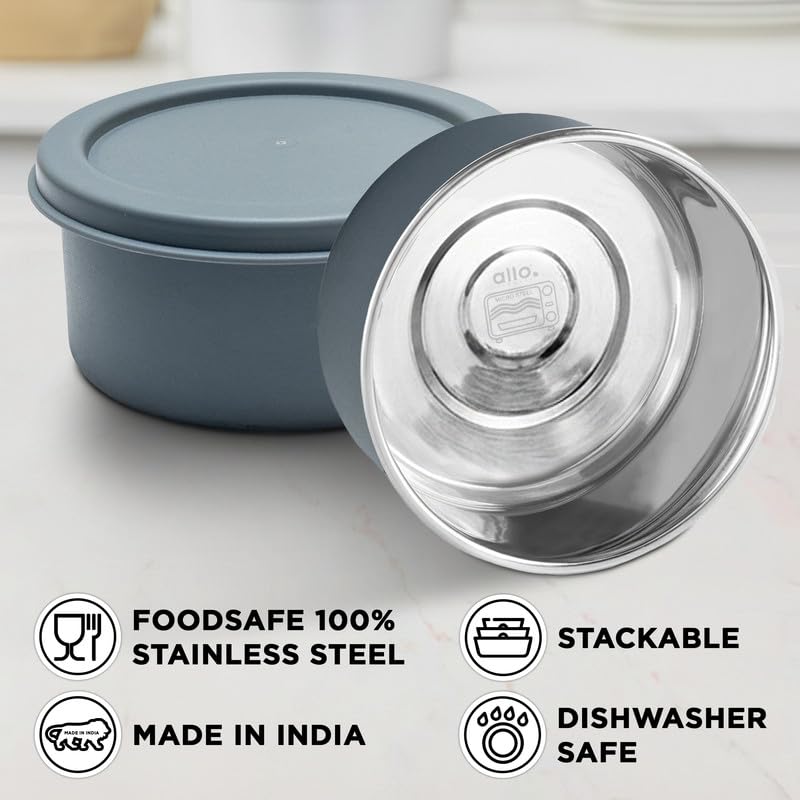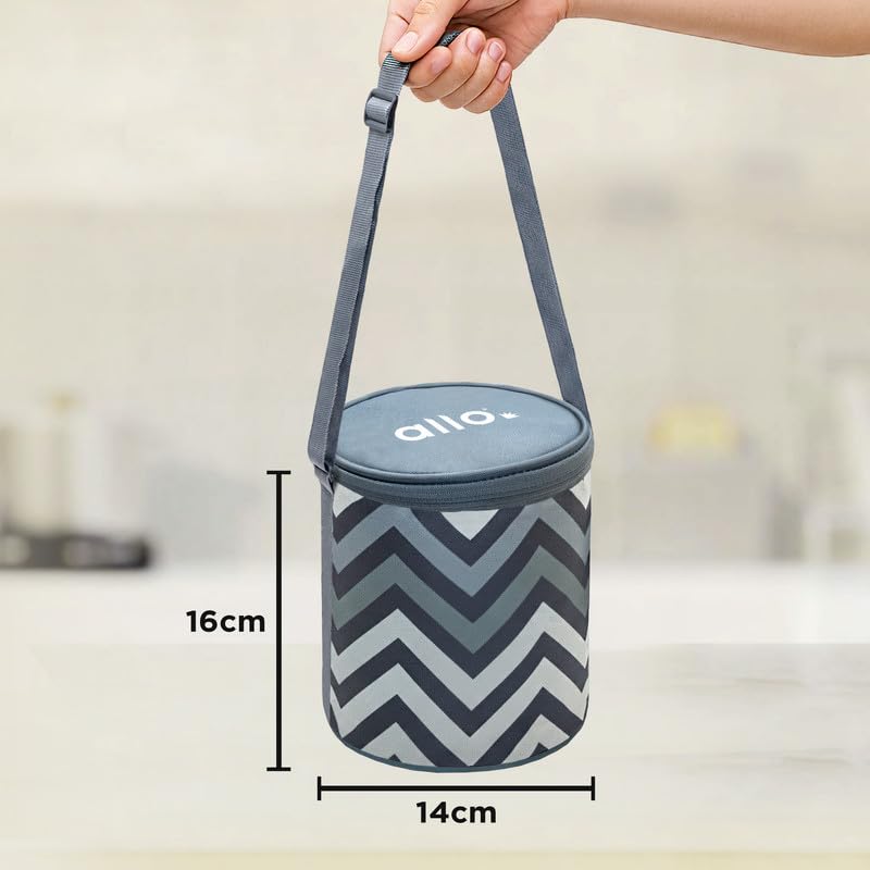 Hello, I’m Allo! The purpose of my existence is solely to provide you with products that are best for you and your health. Each product embodies my soul to serve a single purpose. We use more than 20 years of experience in manufacturing kitchen products to achieve the purpose of Allo. Welcome to the Aloe family, we hope to make every meal a great experience. Introducing the Aloe Food Safe Stainless Steel Lunch Box with Bag, your ideal everyday meal companion for work, college, travel or the gym. Made of 100% food-safe stainless steel, this lunch box for office use keeps your food safe, pure and fresh. It is 100% leakproof, so juices, gravies and oily dishes stay inside without spilling out. This microwave safe lunch box allows you to reheat your food safely, and its airtight seal keeps the flavor locked in for hours. Designed for comfort and hygiene, the Aloe Lunch Box is FDA-certified, BPA-free, odor-free, and stain-free, ensuring every meal is healthy and chemical-free. It is also dishwasher safe, making cleanup a breeze. The stylish machine washable bag is durable, long-lasting and fade-proof, making it perfect for daily office use. With its sleek, compact size, it fits easily into backpacks and handbags, ideal as a tiffin box for men, tiffin box for women or a lightweight lunch box for women. This steel lunch box for office use is lightweight, sturdy and easy to carry wherever you go. The high quality zipper pouch adds convenience and effortless utility, making it a great tiffin bag for office for men or a premium office lunch box for men. Proudly made in India, it is crafted with long-lasting quality to support your busy routine. Allo offers a reliable, safe and stylish alternative to everyday meals. Perfect as tiffin box, lunch box, steel tiffin box for office, tiffin box for office and modern stainless steel lunch container suitable for office, school and travel.