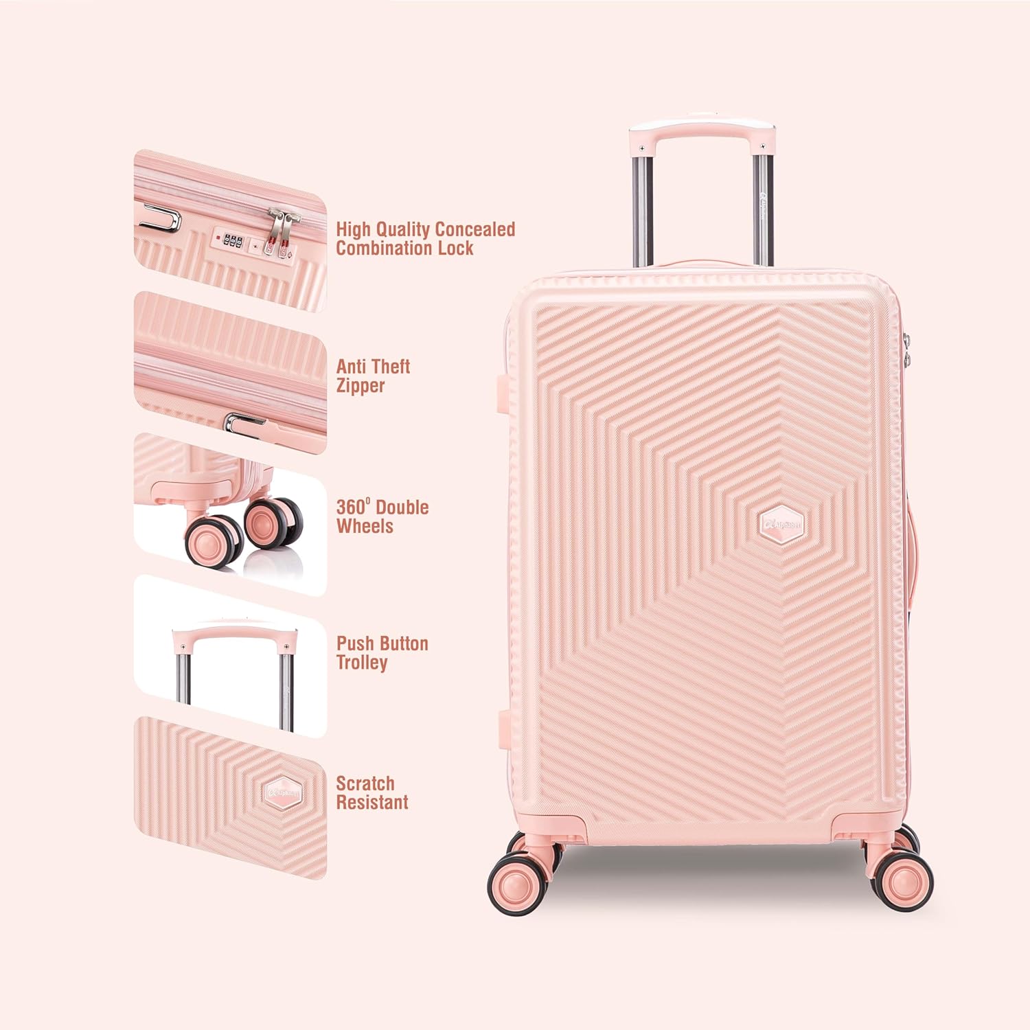 The Alphabet Nomad Hard Sided Polycarbonate Large Size Check-in Luggage is a sleek and durable travel companion designed to make your travels smooth and hassle-free. With its 28-inch (75 cm) size, it strikes a balance between spaciousness and convenience, providing ample room for your belongings while remaining manageable in size. Crafted from tough polycarbonate material, this luggage is built to withstand the rigors of travel, protecting your belongings from bumps and impacts along the way. Its hard-sided construction ensures that your belongings remain safe during your trip. Equipped with eight smooth-spinning wheels, this trolley bag glides smoothly on various surfaces, allowing you to navigate through busy airports and crowded streets with ease. Multi-directional wheels provide excellent mobility, reducing strain on your arms and shoulders while moving. The interior of the luggage has been thoughtfully designed with organization in mind. It has multiple compartments and pockets, allowing you to neatly pack and separate your clothes, shoes, cosmetics and other essentials. Adjustable straps help keep your belongings secure, minimizing shifting during transit. Additionally, Alphabet Lisbon luggage includes practical features for added convenience. It has a sturdy telescopic handle that extends easily for comfortable handling, as well as a concealed combination lock for enhanced security. The sleek design and stylish finish make it a fashionable accessory for your travels, ensuring that you arrive in style wherever you go on your adventures.