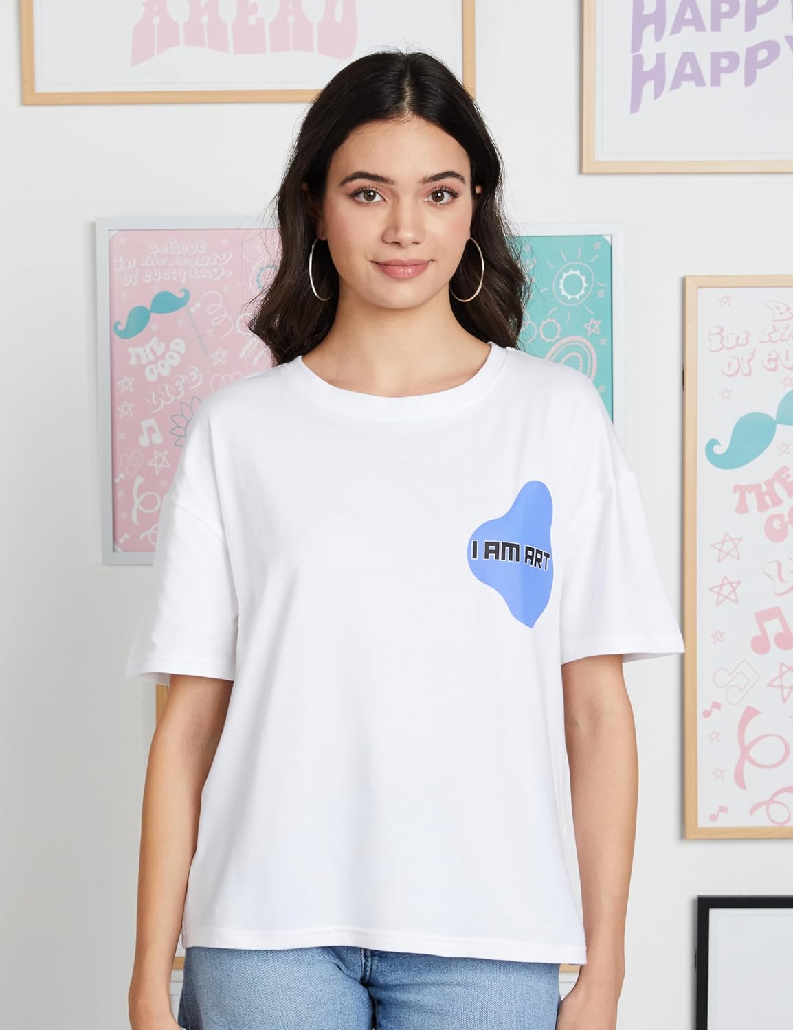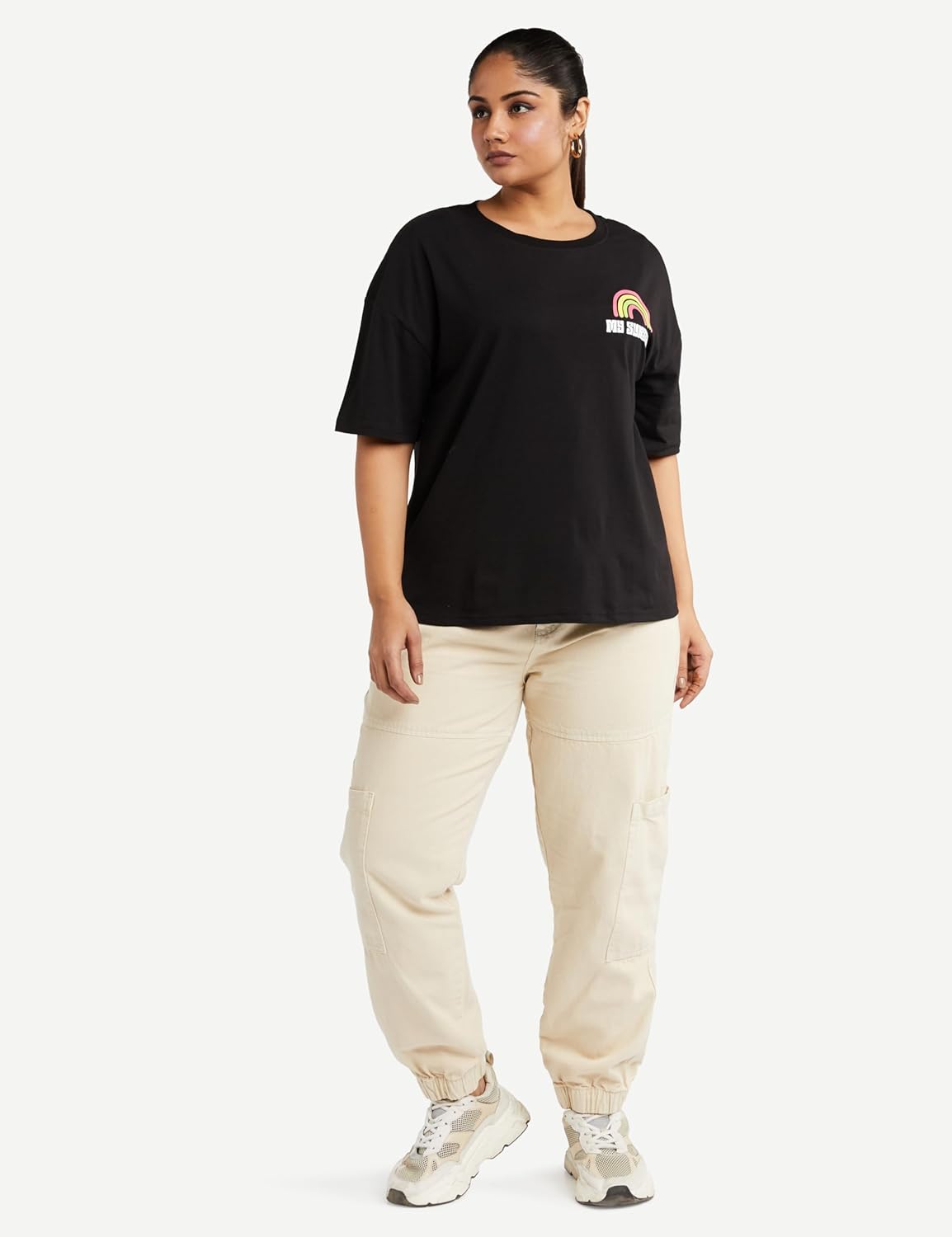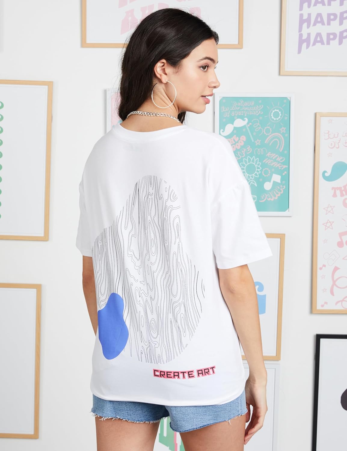 Generic Name : Graphic Cotton Stretch Half Sleeve Round Neck Oversized Loose Fit T-Shirt (Front and Back Print (Available in Plus Size)