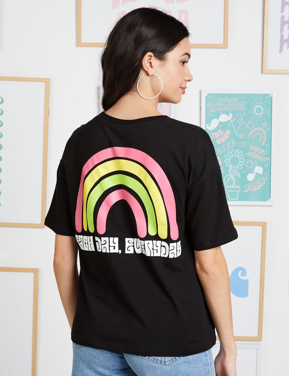 Generic Name : Graphic Cotton Stretch Half Sleeve Round Neck Oversized Loose Fit T-Shirt (Front and Back Print (Available in Plus Size)
