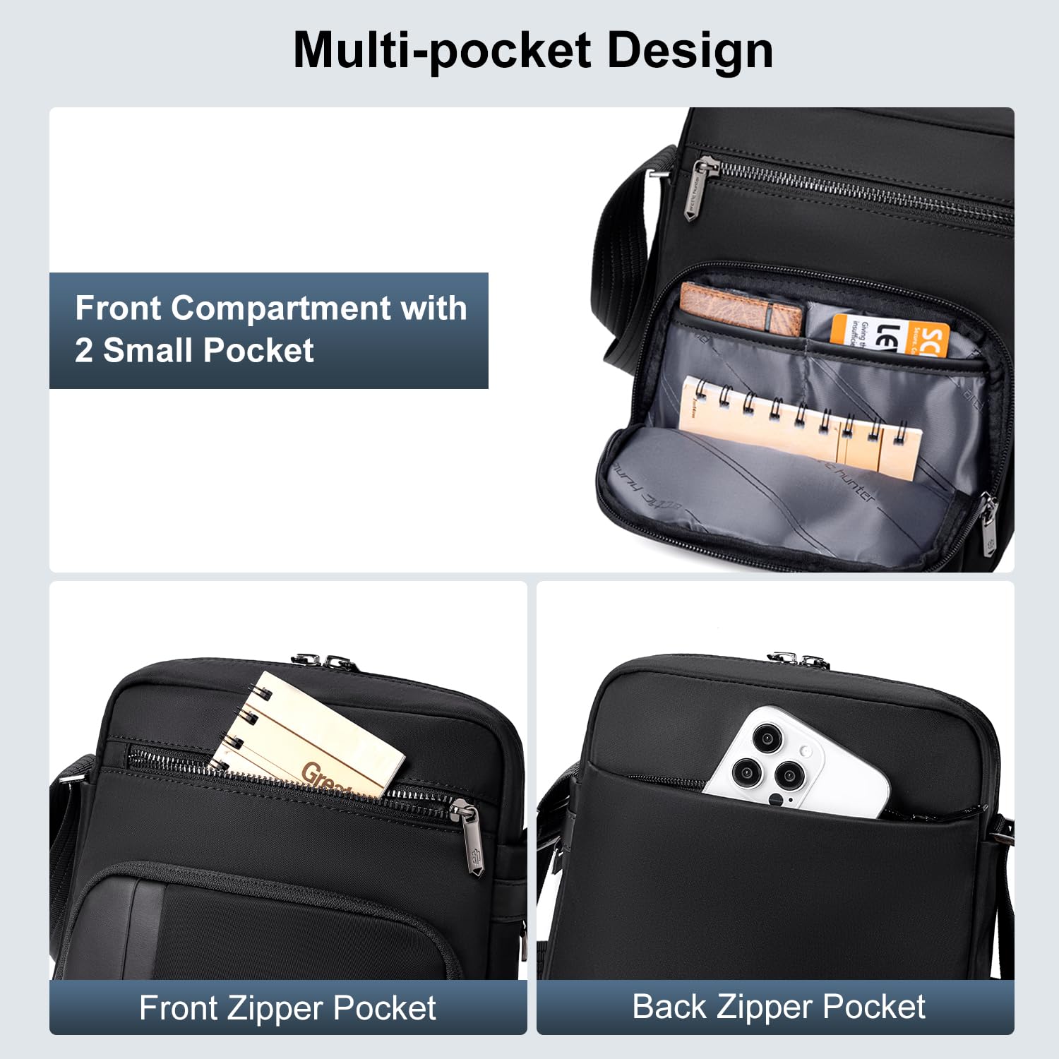 This compact yet spacious 3.6L bag (21*7*25 cm) is perfect for work, travel and daily use. Made from high-quality nylon with soft polyester lining, it offers a premium feel and water-repellent protection. It has four well-organized compartments, including a main section with an 8-inch iPad pocket, two front compartments for easy access and a secure back pocket, keeping essentials neatly stored. Smooth, durable zippers ensure effortless use, while the adjustable 135 cm shoulder strap provides a comfortable fit for all body types.