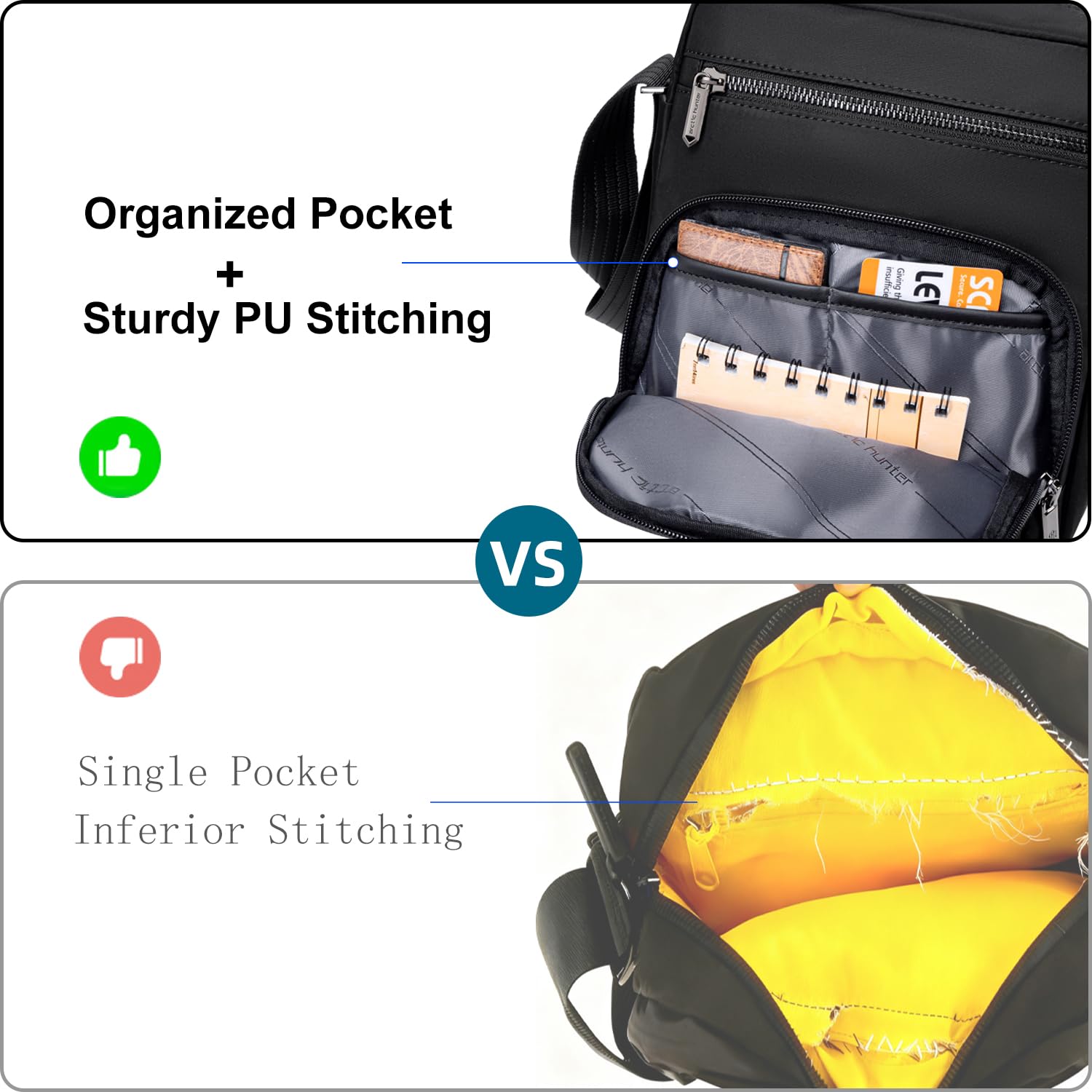 This compact yet spacious 3.6L bag (21*7*25 cm) is perfect for work, travel and daily use. Made from high-quality nylon with soft polyester lining, it offers a premium feel and water-repellent protection. It has four well-organized compartments, including a main section with an 8-inch iPad pocket, two front compartments for easy access and a secure back pocket, keeping essentials neatly stored. Smooth, durable zippers ensure effortless use, while the adjustable 135 cm shoulder strap provides a comfortable fit for all body types.