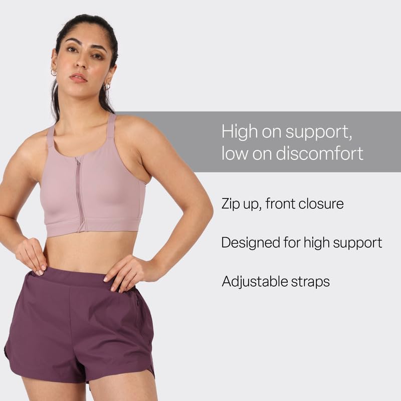Front zip closure makes it easy to wear. Attached internal hook provides additional support during activities.