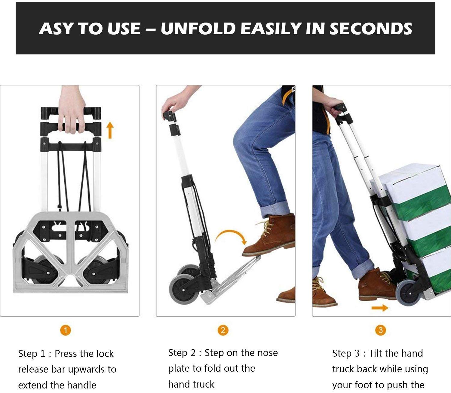 Ideal for home improvement, travelers, trade fair exhibitors, the office or anyone who needs to carry something, you can easily transport up to 176 pounds at a time. Whether you’re carrying boxes or unloading a car, this lightweight hand truck does all the heavy lifting. Folding as you can easily expand it from 25″ to 32″ or 39″ to meet the needs of different occasions.