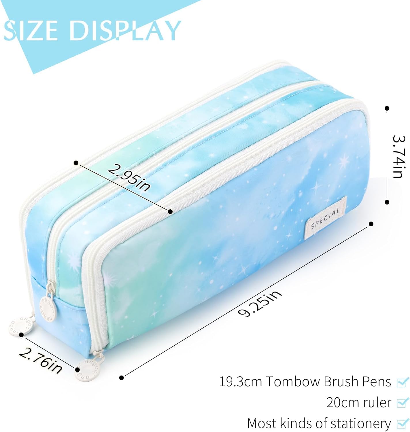 Customers find the pencil case to be of good quality, with a smooth zipper and soft material. They appreciate its spacious design and pretty color, with one customer noting the soothing blue tones. The storage capacity receives positive feedback, with one mentioning the extra compartments are great for organizing smaller items. Customers like its size, with one noting it’s practical for students and professionals alike.
