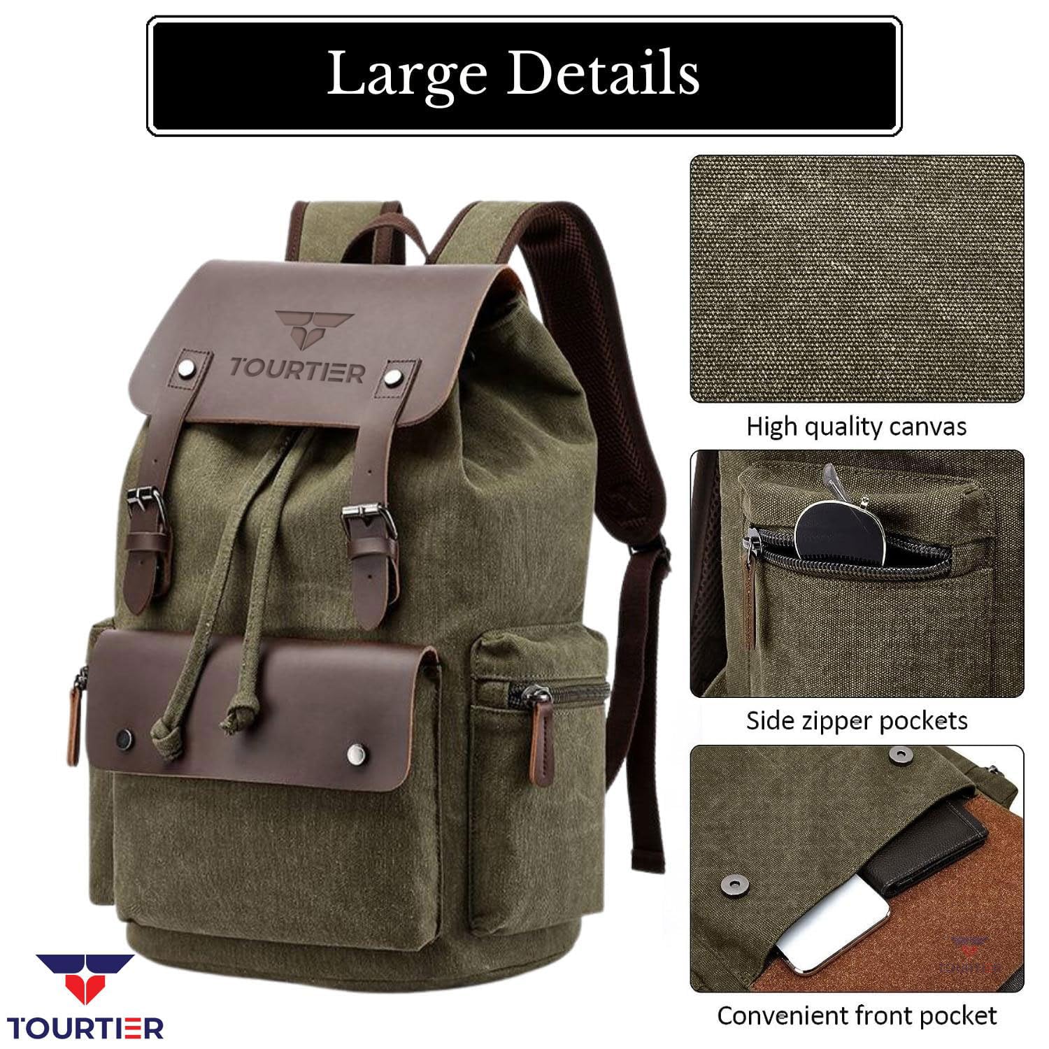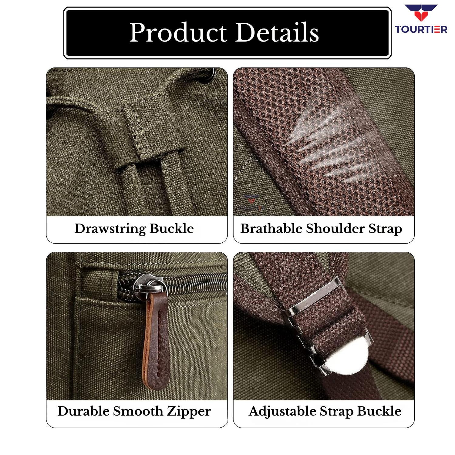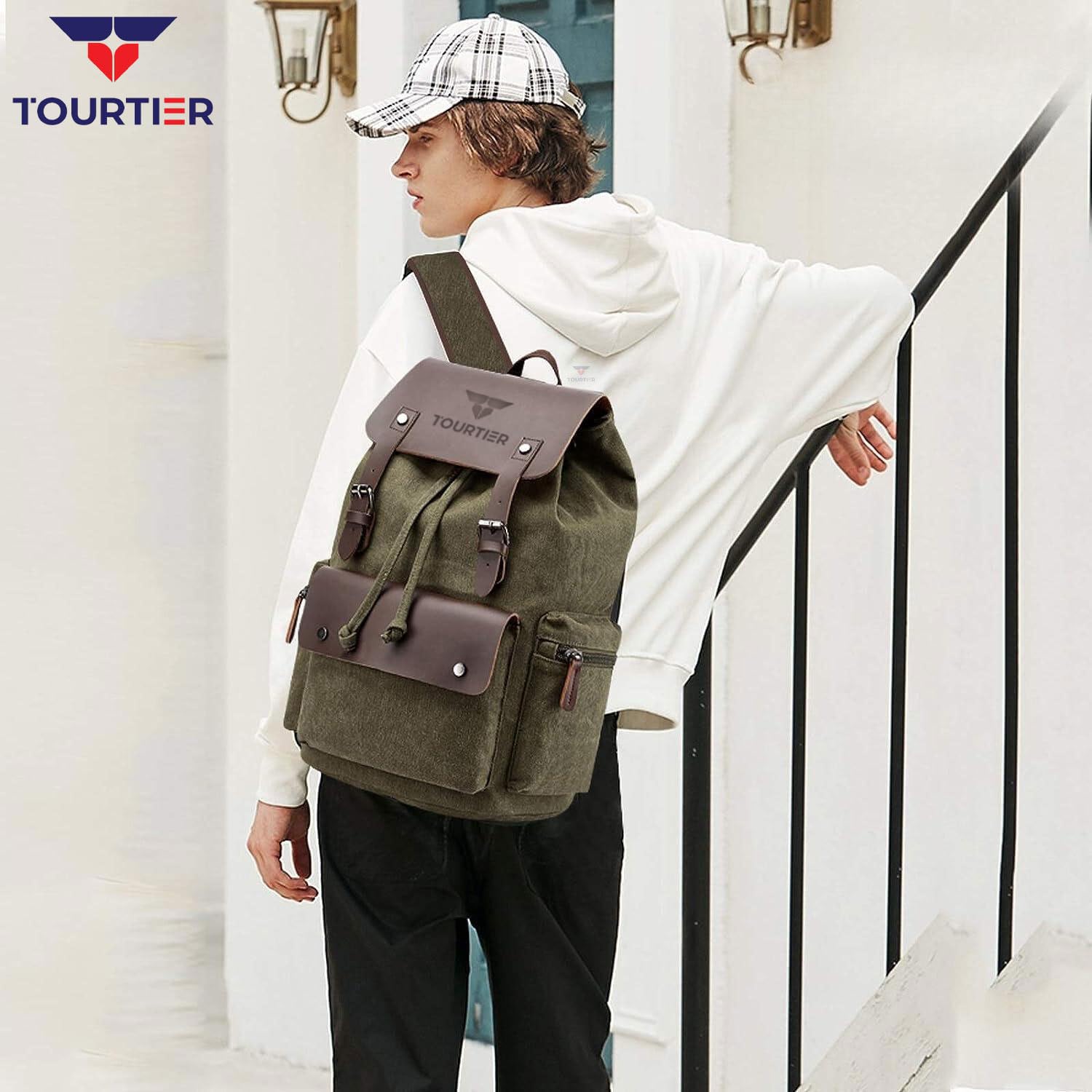 Tourtier Canvas Travel Daypack Drawstring Backpack Flip Bag Retro Laptop Bag for Men Women