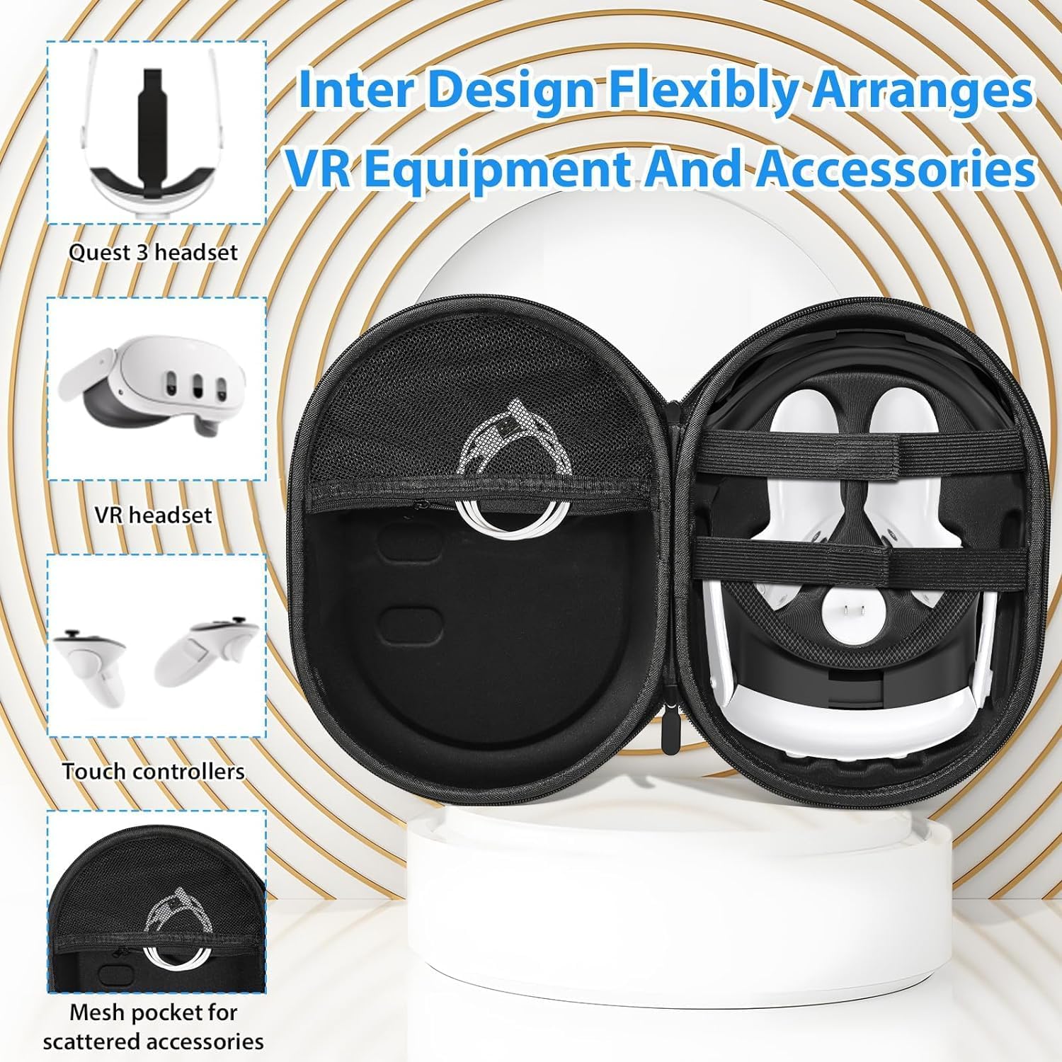 Travel Case for Oculus Quest 3S: Carrying case designed specifically for Oculus Quest 3S, its custom-molded interior compartment will be a perfect fit for the Oculus Quest 3S headset, providing excellent protection for your Oculus Quest 3S VR set. Additionally, the elastic fasten belt can keep your device in place while on the go. Meta Quest 3S Carry Case is specially designed for Meta Quest 3S, unique line design makes the appearance more fashionable. Note: Case only, Quest 3S and accessories are not included.