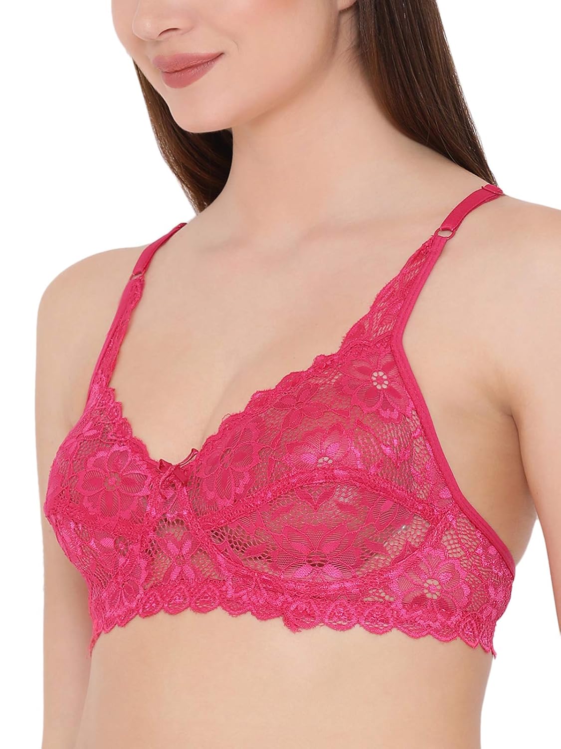 Pink colored sexy yet comfortable bra. Crafted from soft and premium lace fabric for a classy look. Non-padded with no extra bulk. Non-wired for poke free comfort. Complete coverage to avoid unwanted leakage problems. 2-section cups for a better fit. High center gore for added support.