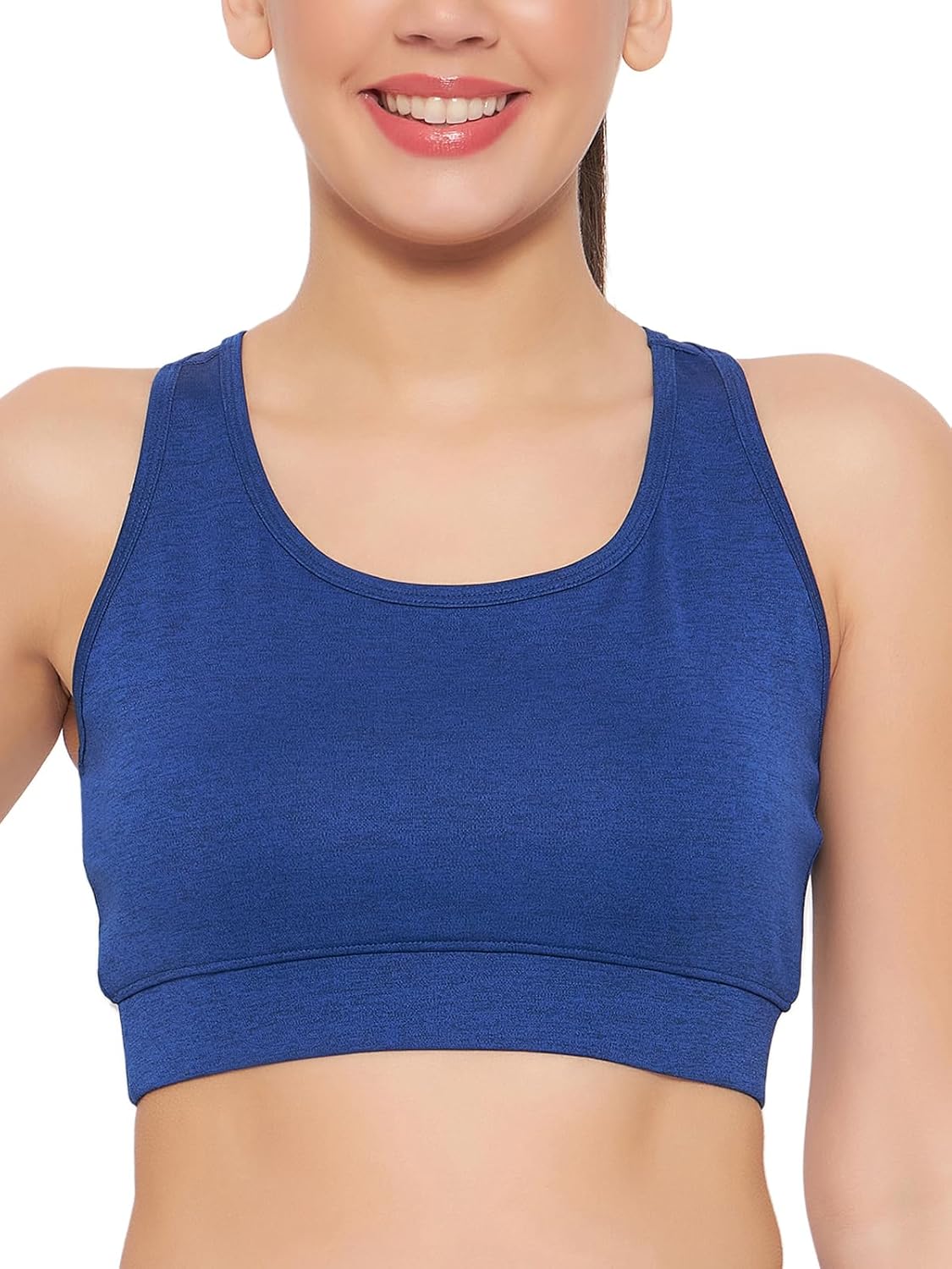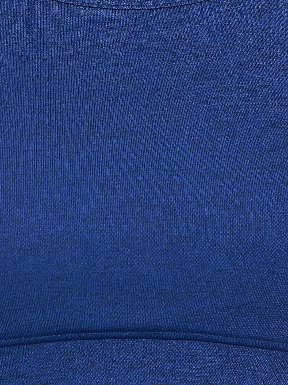 The navy sports bra is made from soft moisture wicking poly spandex fabric. Engineered with 4-way stretch fabric that moves with your movement. Quick Dry technology that wicks away sweat during intense workouts, keeping you cool and dry. Anti-static properties to prevent clothes from sticking to the body. Removable cups to protect modesty. Easy to wear slip-on style. Racerback for added support. It has great elasticity, sweat resistance and comfort. Provides ease of mobility and prevents wear and tear. Maximizes flexibility, mobility performance. Perfect for Zumba, dancing and running.