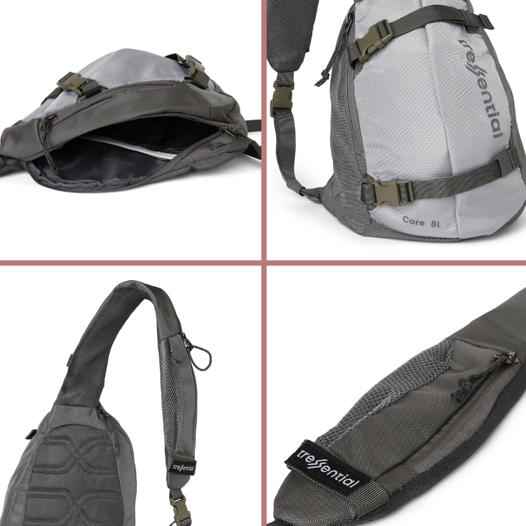 Introducing the Tresential Core 8L Sling Bag – your favorite companion for everyday adventures, city trips or quick getaways. Designed with a smooth and ergonomic sling profile, this compact 8-litre bag offers the right amount of space to carry your daily essentials like tablet, phone, wallet, keys and water bottle without any unnecessary bulk. The padded, adjustable shoulder strap ensures a comfortable, secure fit, allowing easy travel without flipping the bag to the front. Constructed with durable, weather-resistant materials and a water-repellent finish, it stands up to unexpected drizzle and daily wear. Inside, you’ll find a thoughtfully designed main compartment with a padded tablet sleeve and mesh pocket for better organization, while the zippered front pocket features a handy key clip. A breathable, moisture-wicking back panel provides all-day comfort. Whether you’re exploring a new city, commuting to work, or hitting the road, the Tresential Core 8L is built to go with you – light, efficient, and always ready.