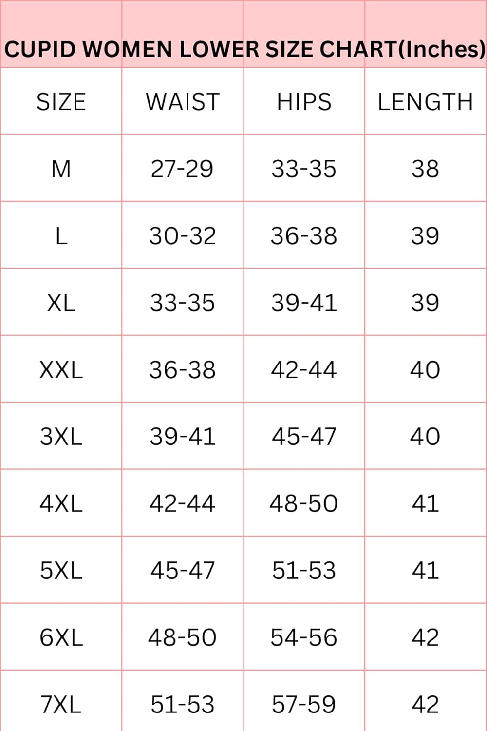 Sizes M to 7XL