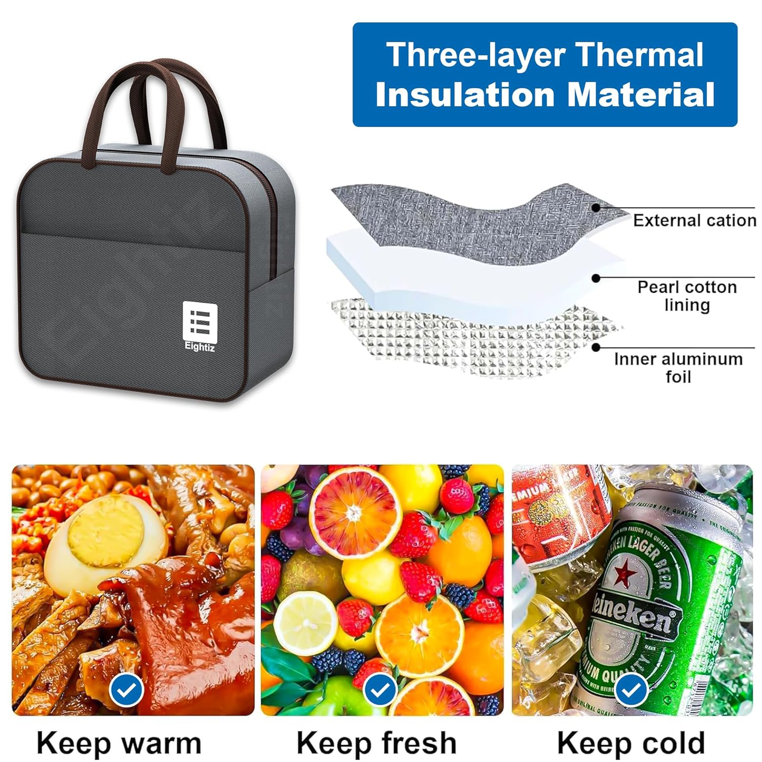 Premium Quality: Designed to keep food fresh for hours while ensuring both food safety and your well-being, our lunch bag features durable, eco-friendly Oxford fabric and insulated aluminum foil.