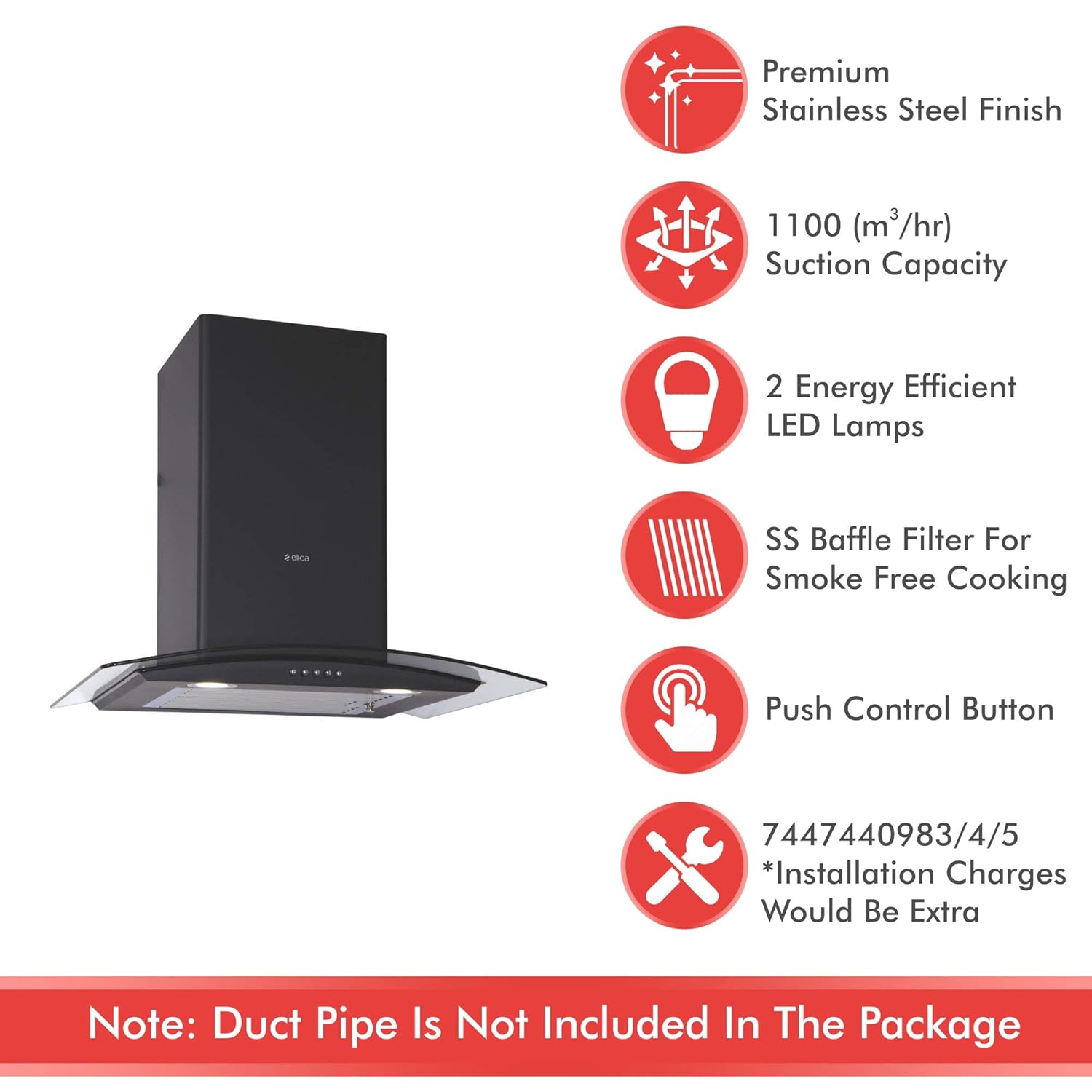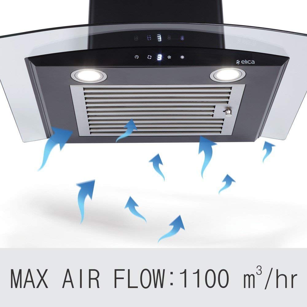 Electively designed Elika Chimney mixes with any kitchen style as well as adds great functional value. The product is strong and will serve you continuously without capturing a lot of space in your kitchen. This small and powerful tool will never disappoint you with its powerful performance.
