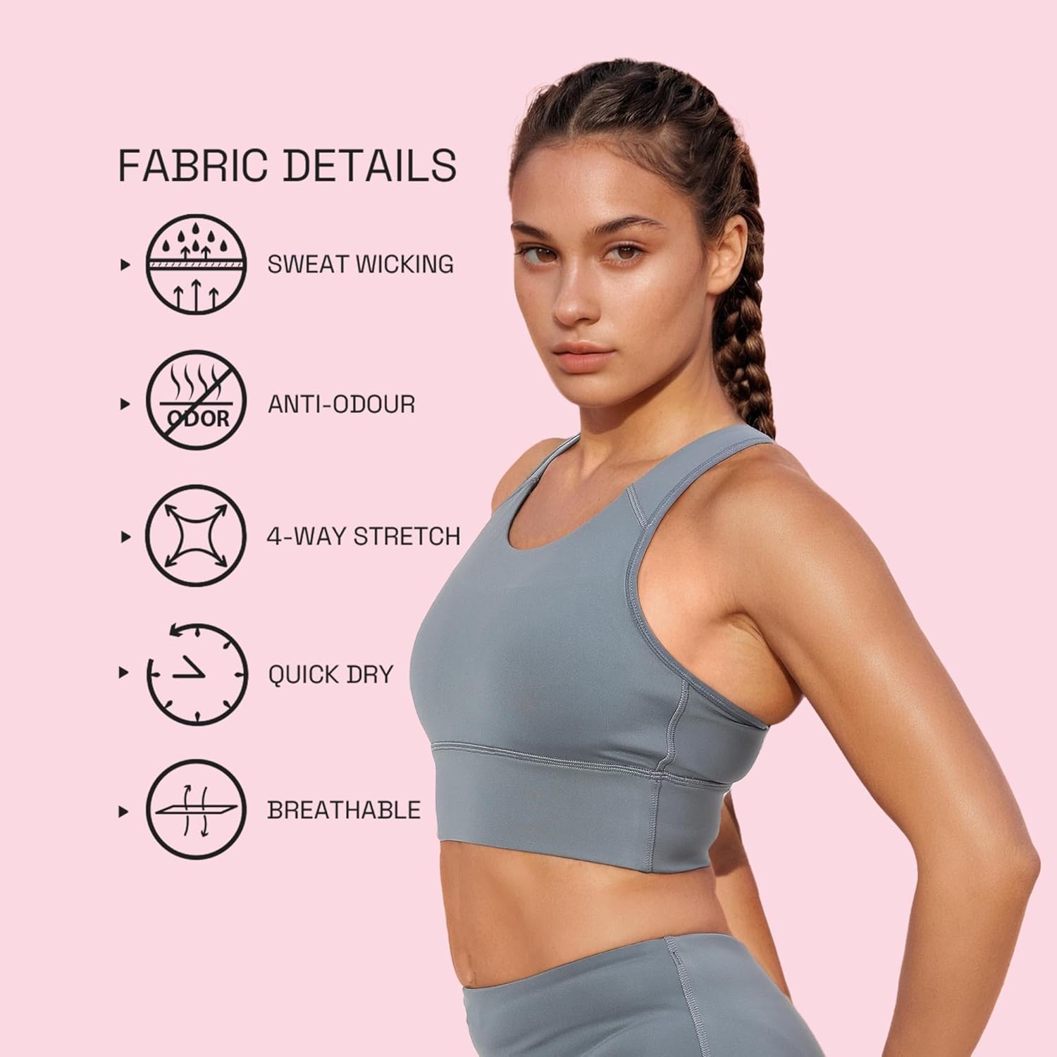 Your go-to medium support sports bra is designed with breathable mesh ventilation, made from antimicrobial buttery soft dry fit fabric that moves with you. Stay active! Stay fabulous!