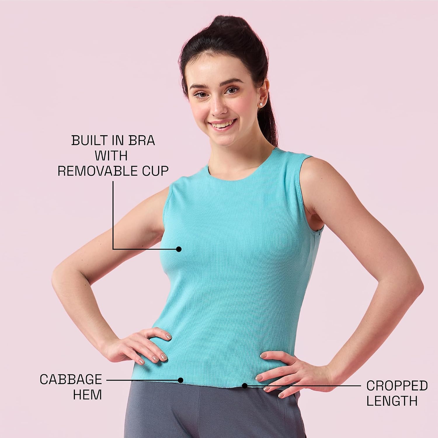 Experience comfort with our cotton rib in-built shelf bra crop top. Say goodbye to traditional bras and enjoy a liberating, bra-free feeling. Stay Active, Stay Great!