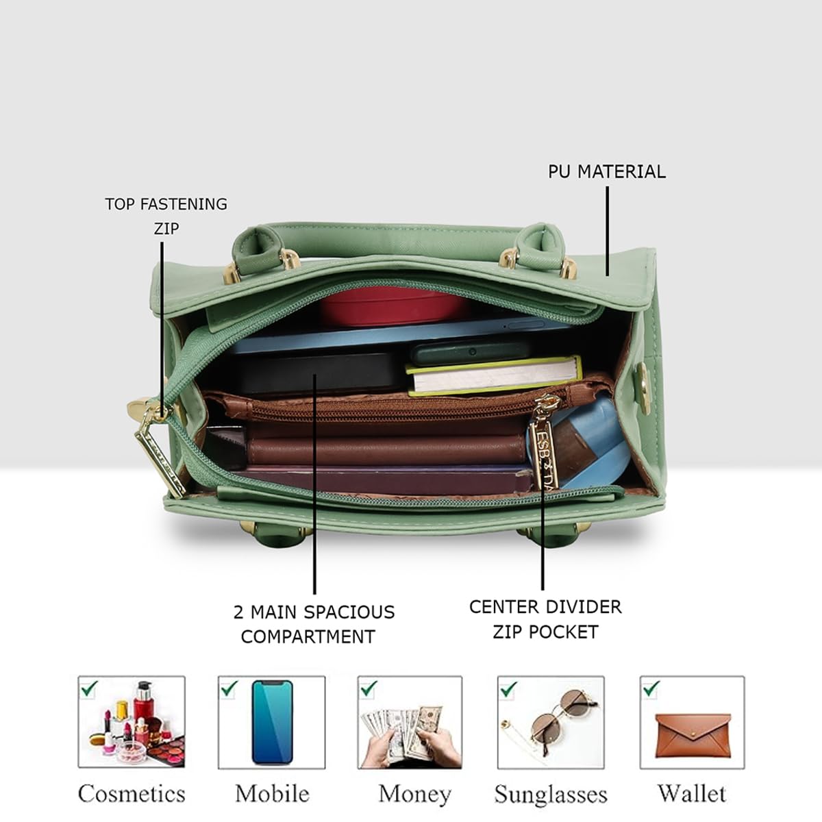 Generic Name : ESBEDA Pistachio Color Structured Satchel Handbag for Women