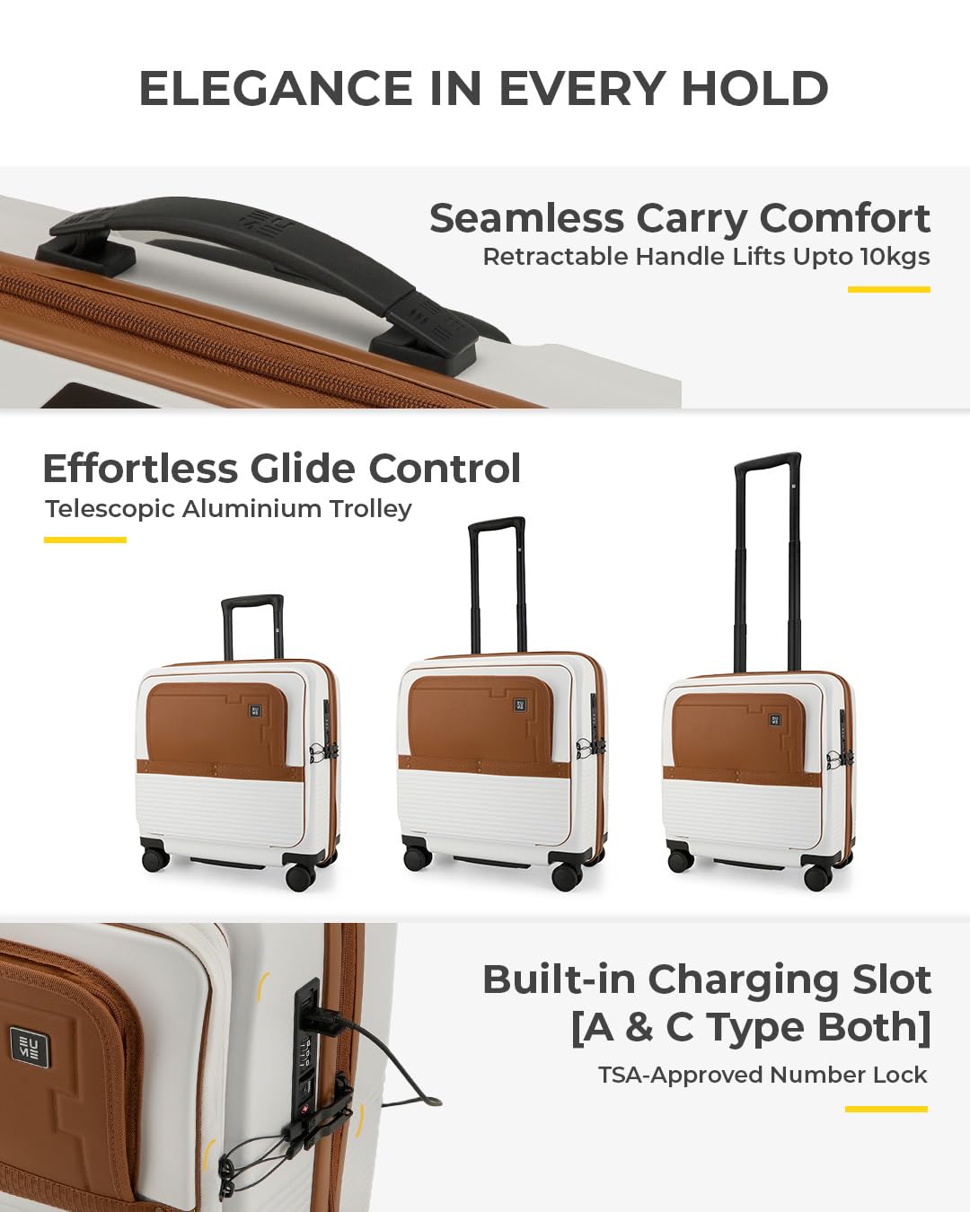 1 Durable Travel Design 2 Travel Safe Protection 3 Smooth Closing 4 Telescopic Handle 5 Perfect Pocket