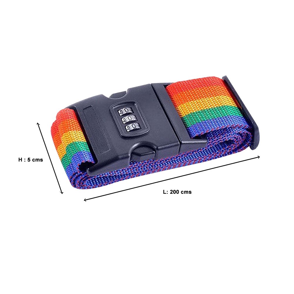 3-digit combination lock, adjustable woven strap, side release plastic buckle, luggage strap.