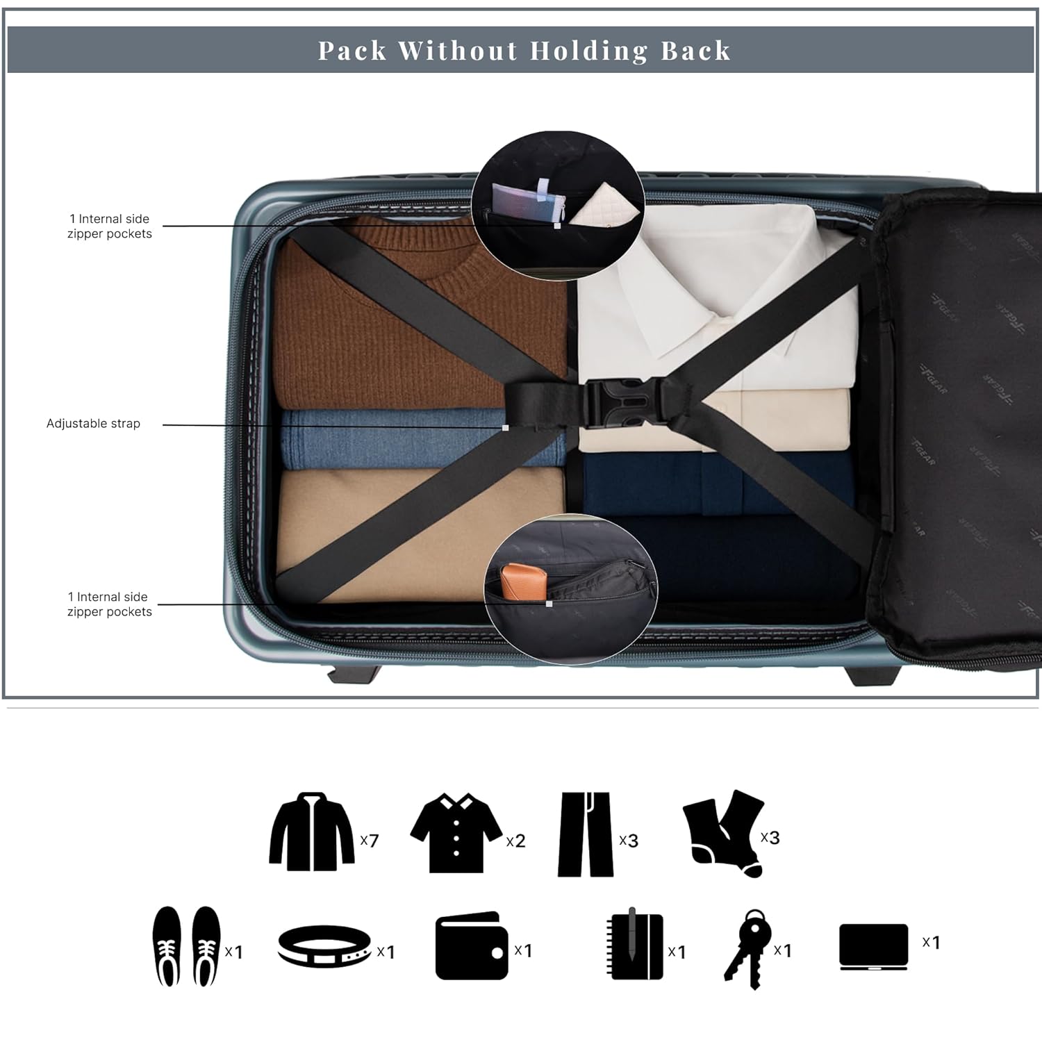 PREMIUM MOBILITY & DURABLE CONSTRUCTION – Engineered with 8 Japanese Hinomoto 360° spinner wheels and a German Bayer polycarbonate shell for a smooth and silent glide that is impact-resistant yet lightweight at only 3.1 kg.