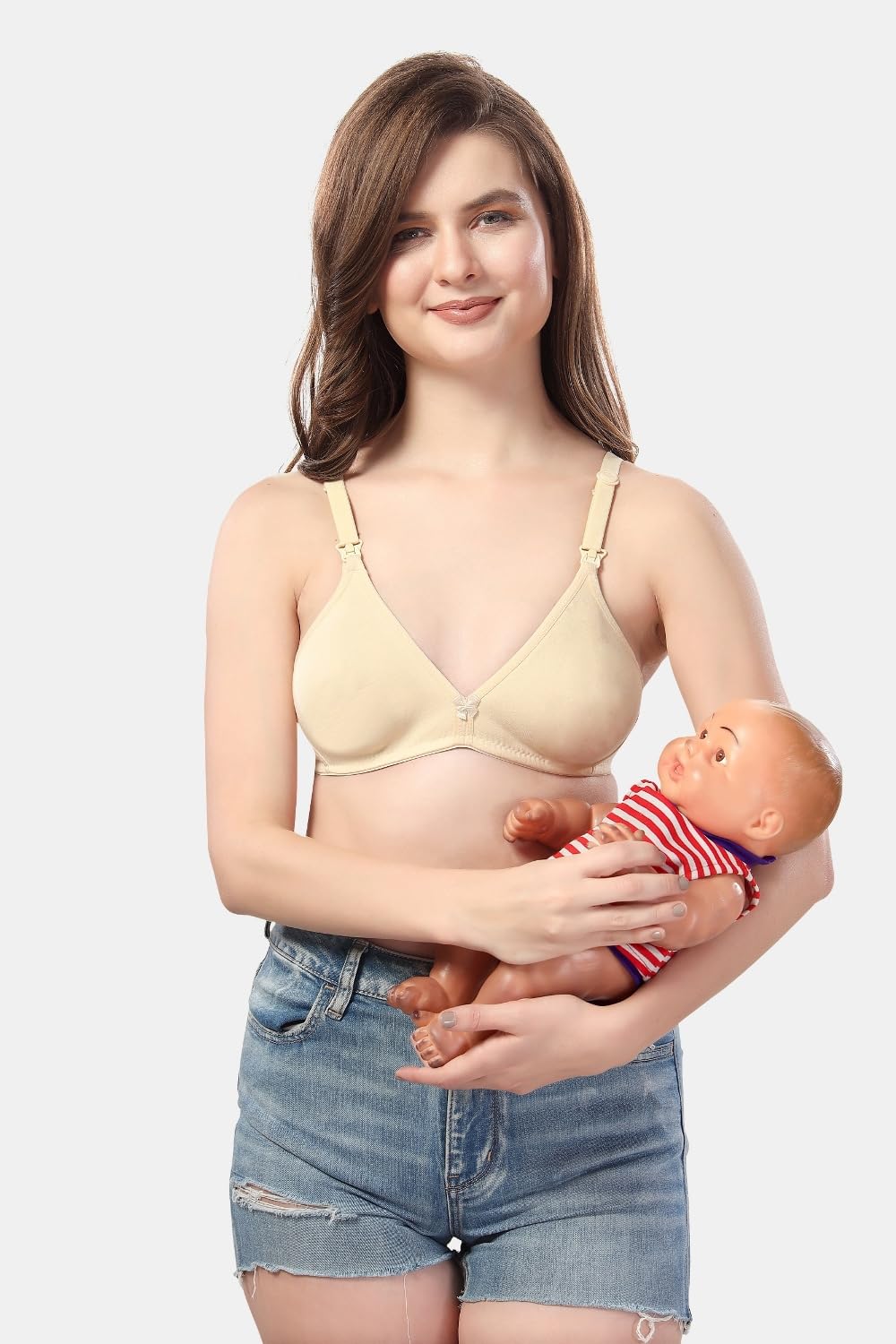 Fabme Women’s Hosiery Cotton, Seamless, Non-Padded Bra, Nursing Bra