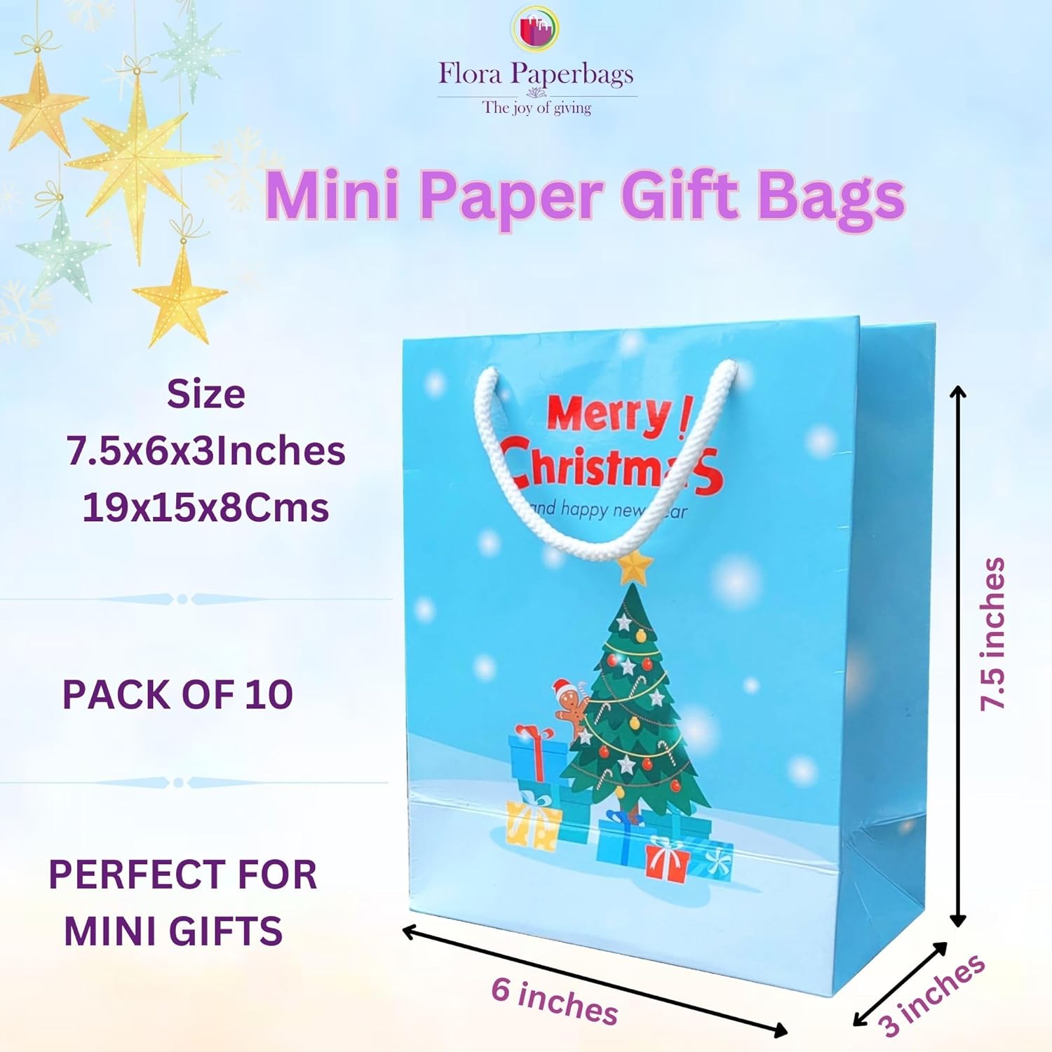 - Premium Christmas Paper Bags – Pack of 10 – Stylish mini Christmas paper bags are perfect for gifts, return gifts, party gifts and festive celebrations. Ideal for Christmas gifts, secret Santa gifts, corporate gifts and kids return gifts with premium glossy finish.