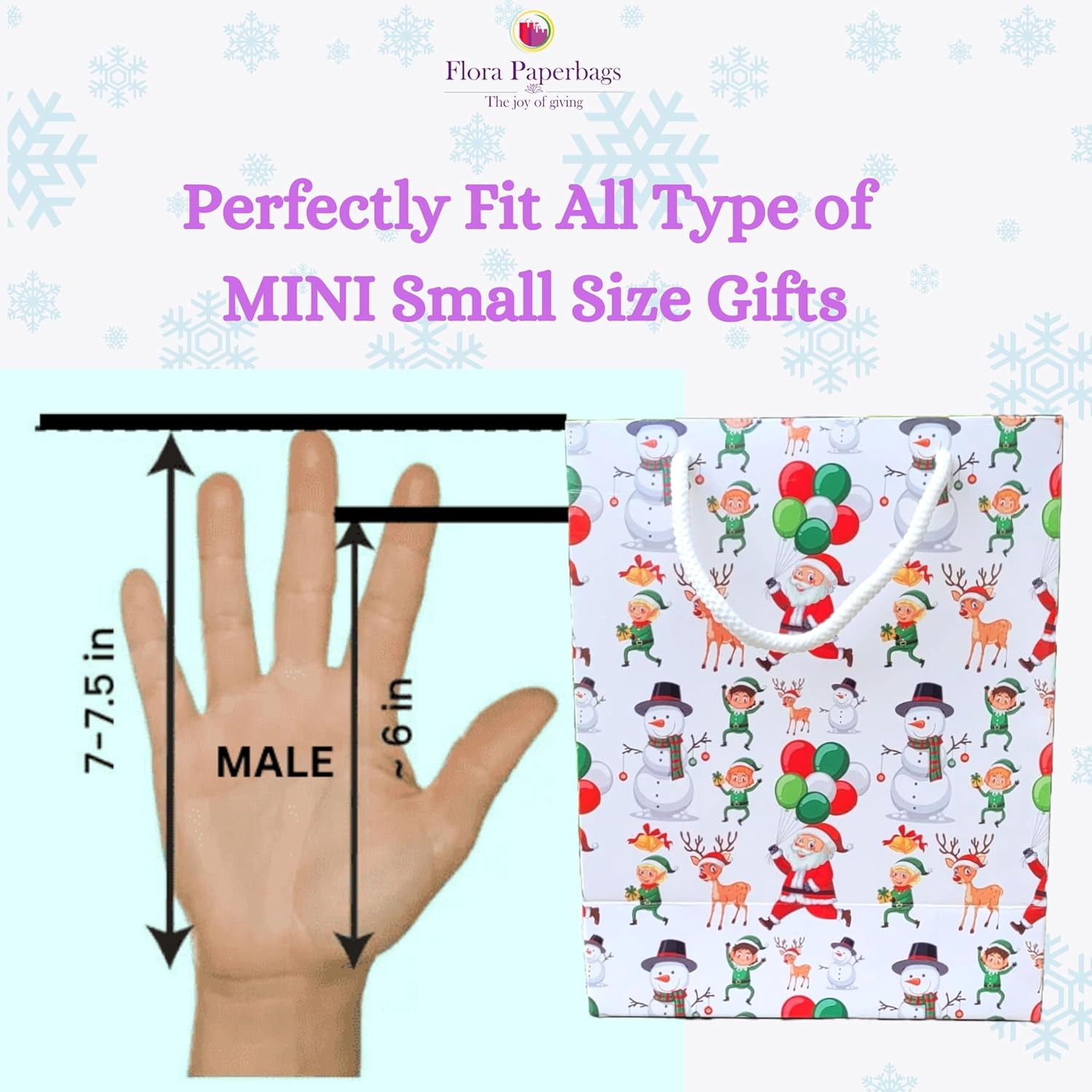 Make your Christmas gift extra special with Flora Paperbags Christmas Paper Gift Bags – premium mini festive bags designed to improve your gift giving experience. Whether you’re crafting Christmas gift bags, planning return gifts, or packing small festive items, these high-quality bags add charm, beauty, and convenience to every occasion. Crafted from sturdy rope handles and luxurious glossy lamination, these bags are sturdy, stylish and perfect for gifting chocolates, cookies, candles, jewelry, accessories, toys and more. The small size (7.5x6x3 inches) makes them perfect for mini Christmas gifts, Secret Santa gifts, kids return gifts and party gifts. These bags are eco-friendly, reusable and recyclable, making them a sustainable option for the festive season. Use these for home gifting, corporate events, school functions or Christmas parties—they always impress with their festive look and premium finish. If you are looking for Christmas paper bags, Christmas return gift bags, mini paper gift bags, or small shiny gift bags for Christmas gift giving, Flora Paperbags brings you the perfect blend of quality and style. Add festive sparkle to your celebrations with these beautifully crafted Christmas gift bags! 🌟Why Flora Gift Bags? At Flora, we combine beauty, sustainability and environmental awareness to create excellent gift bags. With its festive charm and robust design. These bags are perfect for making your gift memorable. Make this Christmas season memorable.