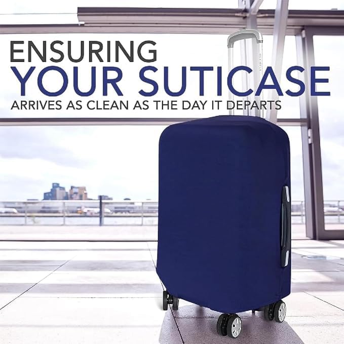 🧳 【Easy to Use】 The elastic luggage cover is designed to be simple and easy to use. With a bottom hook and loop closure and stretchable fabric, it can be slipped on your luggage quickly and easily. Once installed, the cover fits snugly over your luggage and will not slip or move during transit. The cover is also easy to clean and maintain, so you can reuse it for many trips to come.