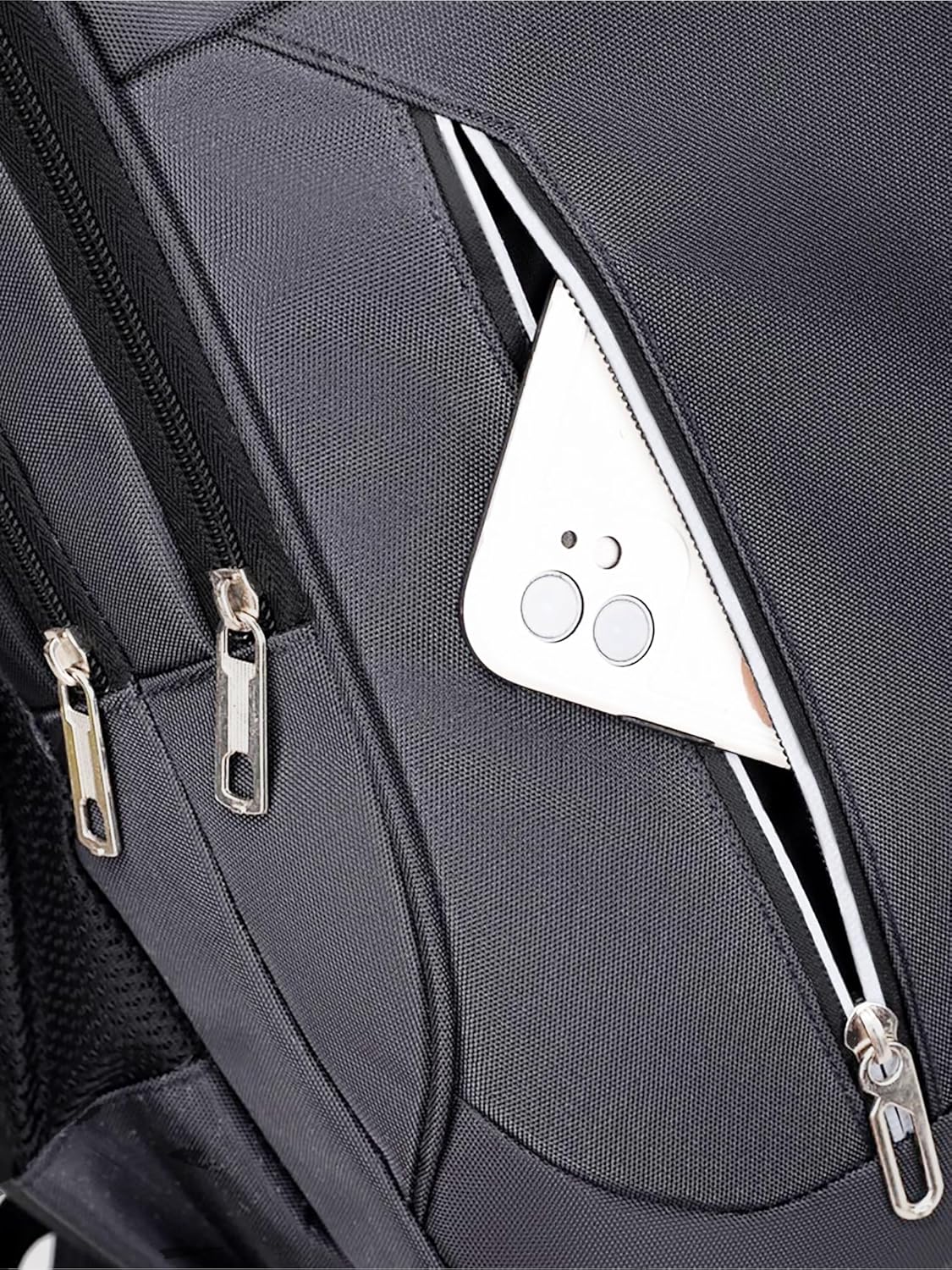 Introducing our stylish anti-theft laptop backpack, which is a perfect blend of fashion and functionality. Crafted from high quality polyester fabric, this backpack not only makes a style statement but also gives priority to sustainability. The attractive design and attention to detail make it an ideal companion for modern professionals and trendsetters. Key Features: Premium Fabric: Made of durable and eco-friendly fabric, this backpack is a guilt-free fashion choice. 15.6 Inch Laptop Compartment: Safely carry and protect your laptop with a dedicated compartment designed to fit up to 15.6 inch laptops. Multiple Compartments: Stay organized with multiple compartments and pockets for efficient storage. Easily access your essentials and keep everything in its place. Smart Organization: The backpack has various small pockets for pens, keys, smartphone and other items, ensuring easy access and quick retrieval. COMFORTABLE TO CARRY: The padded shoulder straps provide comfort during long periods of wear, while the back panel is designed to be breathable, making it suitable for long trips or travel. Stylish Design: The sleek and modern design of the backpack adds a touch of sophistication to your everyday look. Perfect for work, travel or casual outings. Top Handle: Carry the backpack with ease with the sturdy top handle, giving you optional carrying options. DURABLE CONSTRUCTION: Built to withstand the demands of daily use, this backpack is designed with durability in mind, ensuring that it accompanies you on a variety of adventures. Versatile Use: Whether you are an office-going professional or a student on campus, this backpack is versatile enough to meet your daily needs. Invest in a backpack that matches your style while also providing the functionality you need for your on-the-go lifestyle. Enhance your daily carry with our Fur Jaden stylish laptop backpack.