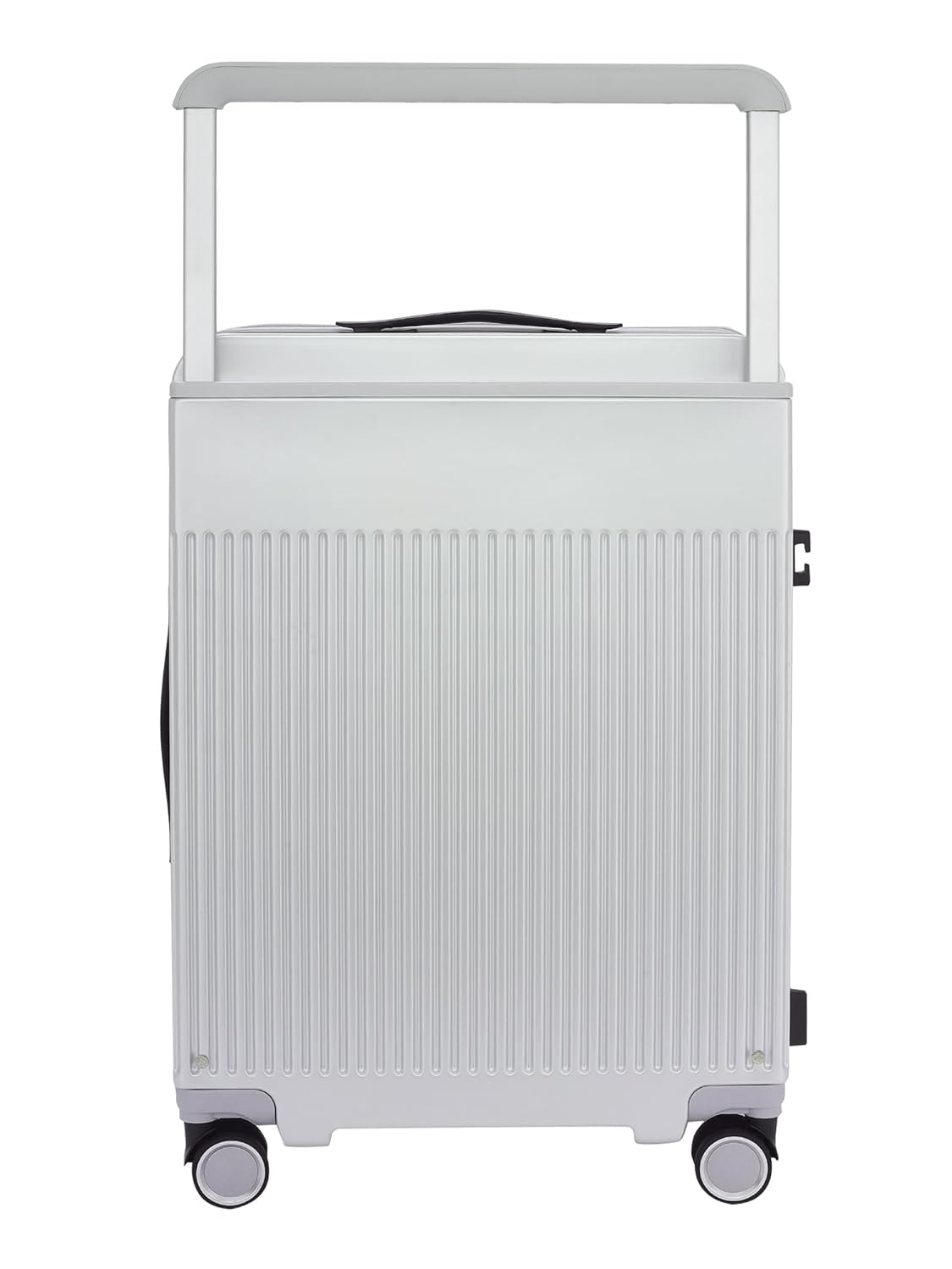 Discover the ultimate blend of timeless elegance and modern innovation with The Aviator, our classic polycarbonate suitcase designed for the discerning traveller. Inspired by vintage charm and packed with contemporary functionality, this suitcase is constructed with an unbreakable polycarbonate shell finished in a luxurious metallic luster, offering both durability and a premium aesthetic. Thoughtfully designed to enhance every journey, it combines sophisticated style with smart convenience, making it an ideal companion for business or leisure. Equipped with a TSA-approved lock, the Aviator ensures your luggage remains secure while meeting global travel standards. Its aerospace-grade trolley handle and StealthTech silent wheels provide effortless, whisper-quiet mobility in airports, streets, and hotel lobbies, ensuring butter-smooth glide wherever you go. Adding to its modern versatility, the suitcase features a fully integrated USB charging system, featuring USB-C for forward charging and USB-A for reverse charging, so your devices stay powered while on the go. For today’s tech-savvy travelers, the Aviator offers a front-opening laptop compartment with organizer pocket that keeps your essentials within easy reach. This compartment is not only padded for protection, but also cleverly designed to provide full access to the interior of the main luggage via a single zip – an invaluable feature when space is tight in a hotel or while travelling. Inside, a built-in organizer system keeps everything neatly organized, while eco-friendly vegan leather trim adds an extra layer of sophistication. Lightweight yet flexible, the Aviator redefines travel with its effortless balance of durability, portability and timeless style. Whether you’re heading out for business meetings or going on new adventures, this suitcase promises to elevate your travels with unparalleled beauty and functionality.