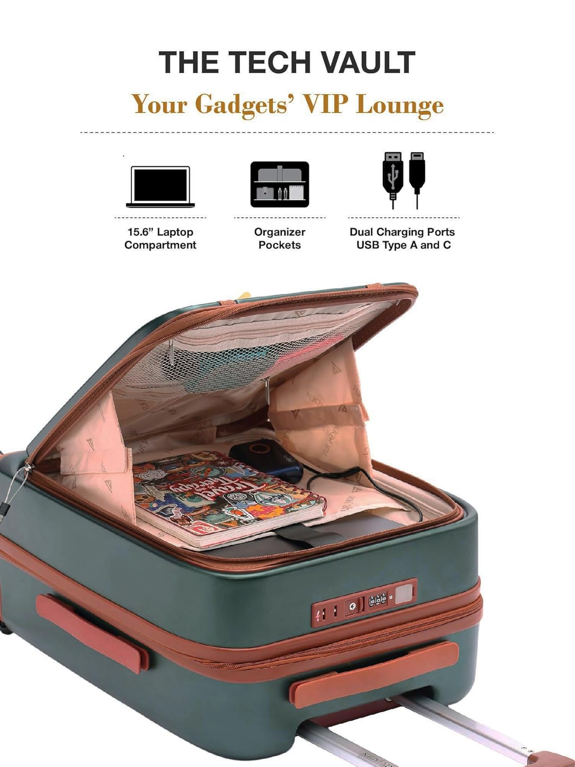 VEGAN LEATHER ACCENTS: Style so premium that even Mother Earth approves – no animals were harmed in the creation of this classy look. Aviation-Grade Telescopic Handle: So sleek, it feels like the suitcase is giving you a first-class upgrade every time you pull it out.