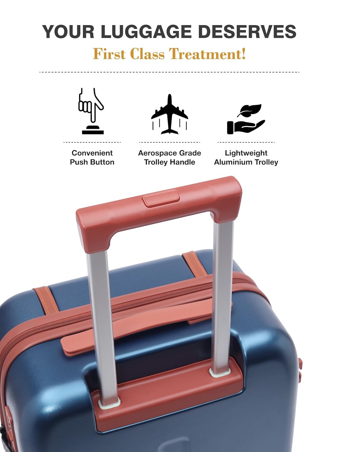 VEGAN LEATHER ACCENTS: Style so premium that even Mother Earth approves – no animals were harmed in the creation of this classy look. Aviation-Grade Telescopic Handle: So sleek, it feels like the suitcase is giving you a first-class upgrade every time you pull it out.