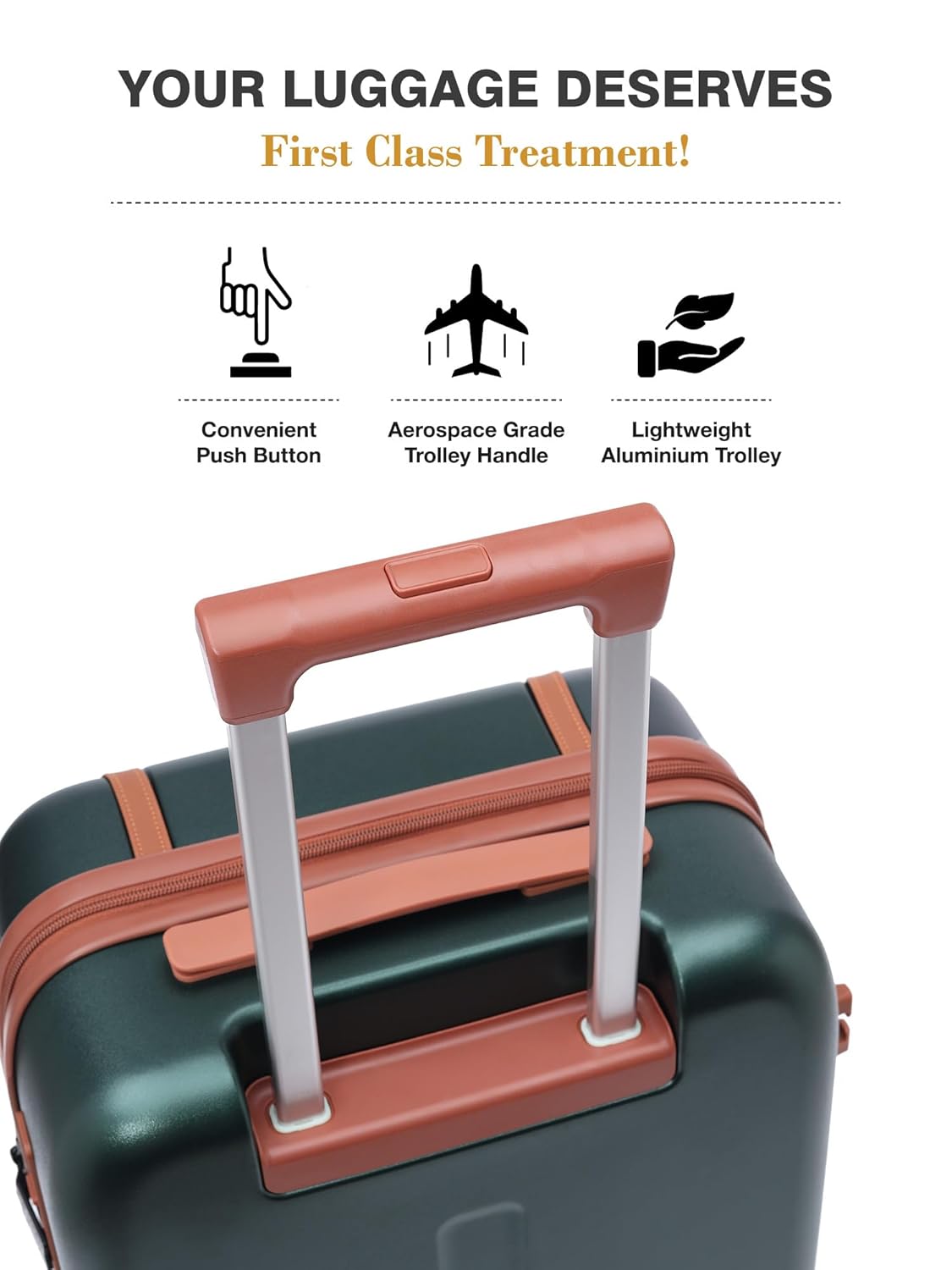VEGAN LEATHER ACCENTS: Style so premium that even Mother Earth approves – no animals were harmed in the creation of this classy look. Aviation-Grade Telescopic Handle: So sleek, it feels like the suitcase is giving you a first-class upgrade every time you pull it out.