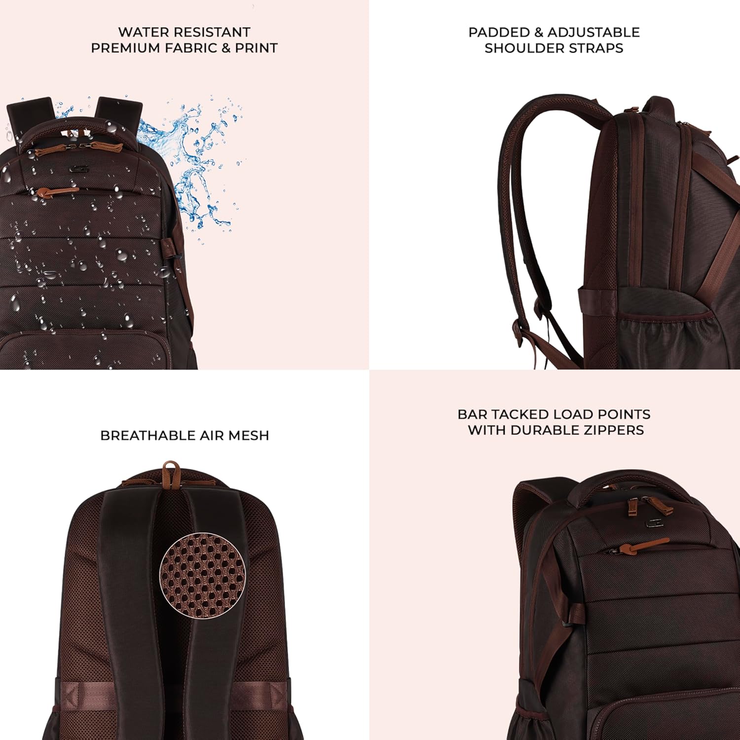 Ergonomic Design: Spacious with multiple compartments and pockets Ease of Access: Optimized back panel with premium cushioning with airflow mechanism Padded sleeve Fits up to 15.6″ laptops and tabs: Padded and adjustable Shoulder straps: Padded Base: Light Weight: Bar-tack Load Point: Water-resistant Fabric: Heavy duty long-lasting zippers