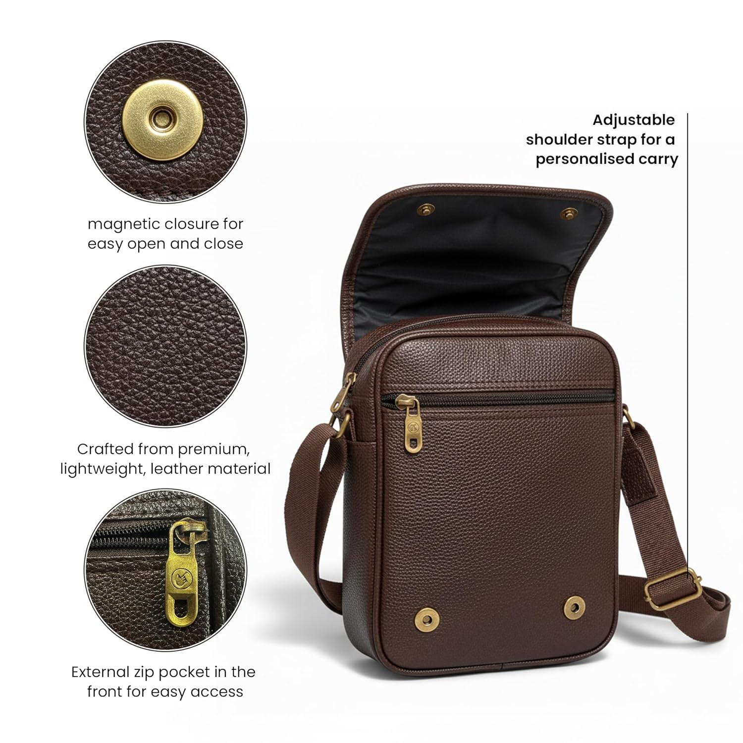 Premium Leather Quality: Crafted from high-grade, durable leather, ensuring longevity and a sophisticated look that ages beautifully; Made as your daily side sling bag for men for both office and casual wear.