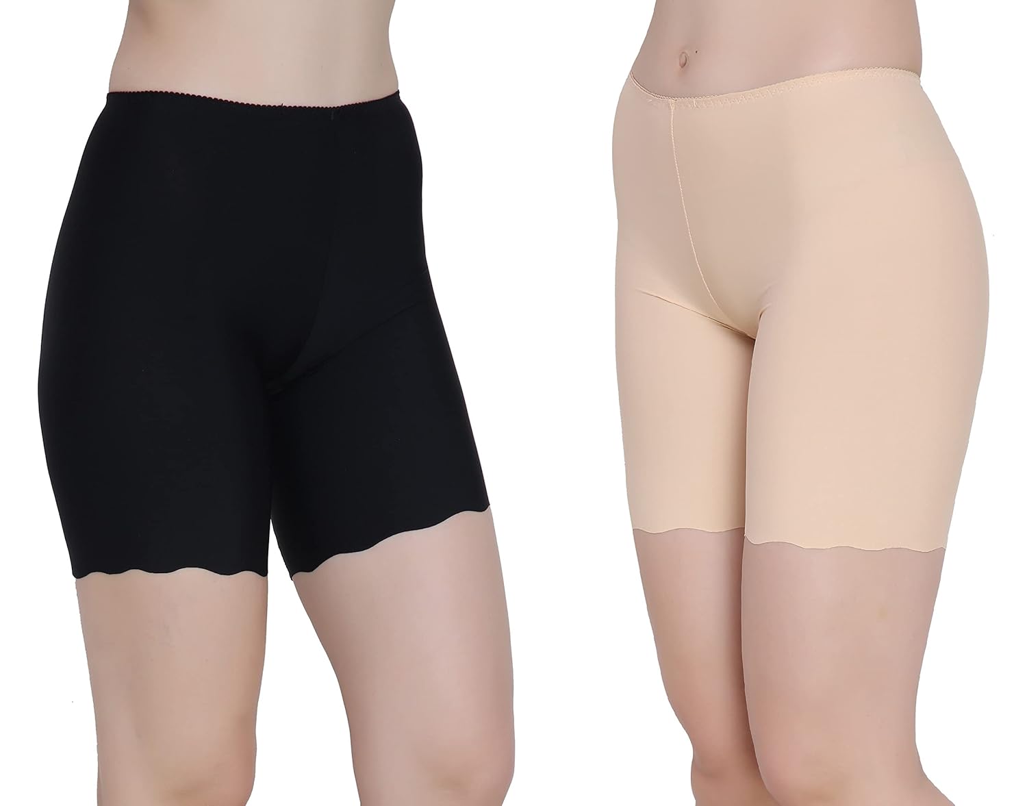 These safety shorts match with your skirt, dress or gown, which can show your charm, ideal for layering under clothes to protect you from embarrassment and friction. Because of the safety material, the shorts are made of ice silk, which is thin and light, soft and durable, but not see-through at all, which will make you feel cool. These safety shorts can protect the thighs from rubbing and sweating, it also has good air permeability and does not feel hot when exercising, it enhances your slim figure.
