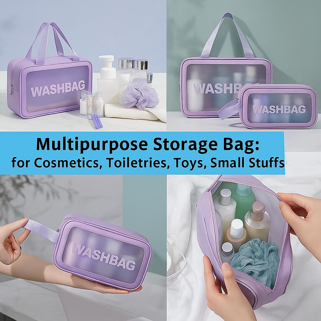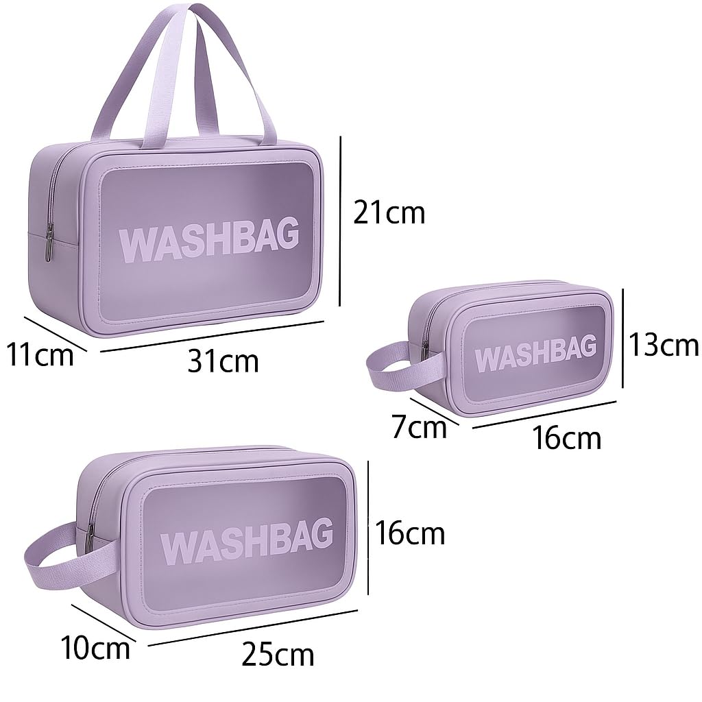 Enhance your travel organization with this stylish set of three clear mint green washbags. Perfect for keeping your toiletries and cosmetics neatly organized, each bag features a convenient handle for easy carrying and a transparent panel that lets you quickly identify the contents. The set includes three different sizes to accommodate a variety of needs, from small essentials to larger bottles. The durable construction and zip closure ensures that your items remain safe during transit. These washbags are ideal for weekend getaways, trips to the gym or extended vacations. The practical design makes them suitable for the whole family, while the refreshing mint green color adds a contemporary touch to your travel accessories. The clear panel helps you easily go through security checks at airports, and the waterproof material protects your luggage from spills. Whether you’re organizing your bathroom essentials or packing for a trip, this versatile set offers both functionality and style.
