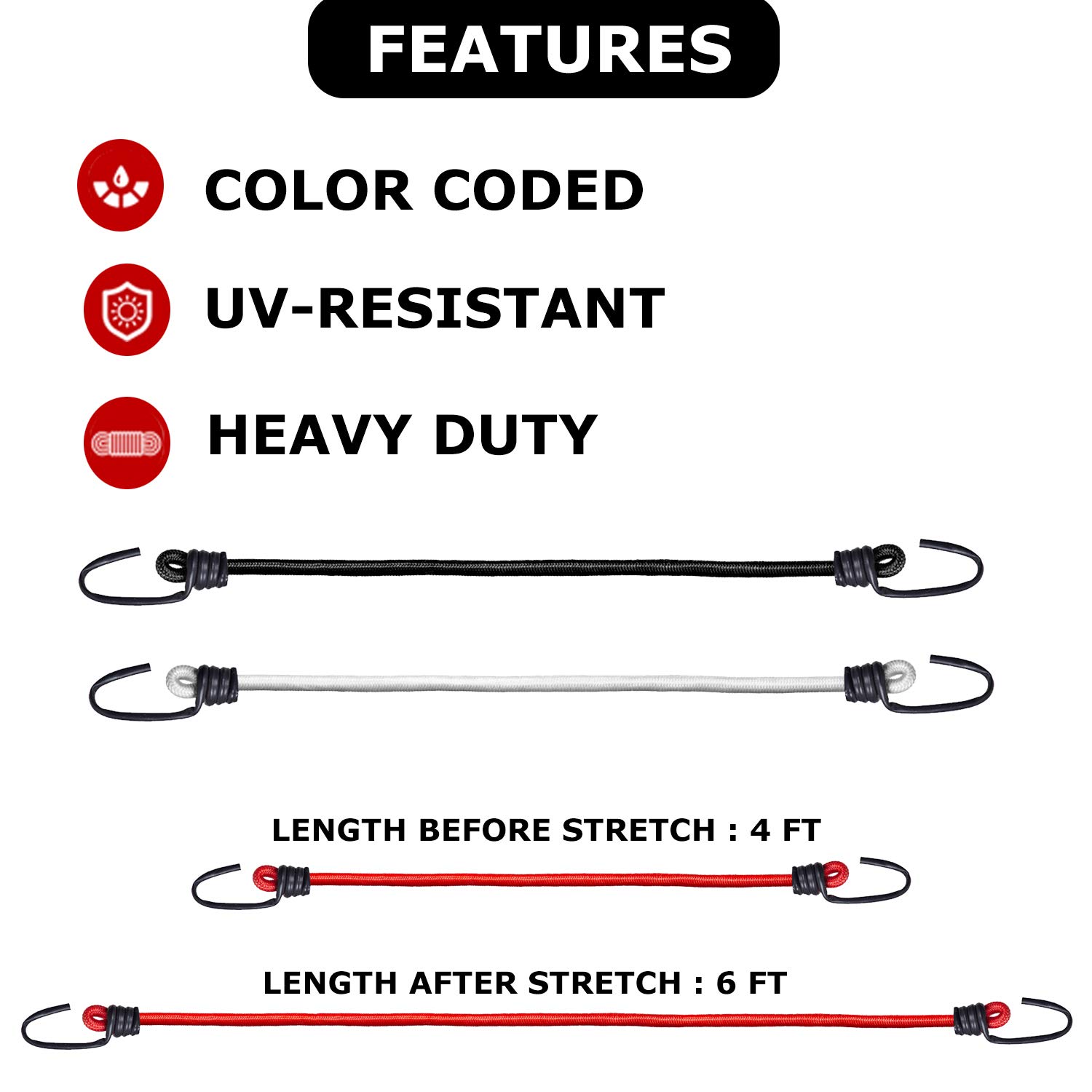 Akabaah’s elastic bungee/shock cords are elastic and resistant to wind and wind pressure. They have an extremely tough, high-stretch, strong natural rubber latex core. The cord is lightweight, strong, wear-resistant and long-lasting. Akaba bungee cords or luggage straps are ideal for everyday use around the house, while camping and can be easily housed in workshops of all sizes. They can also help organize your trunk.