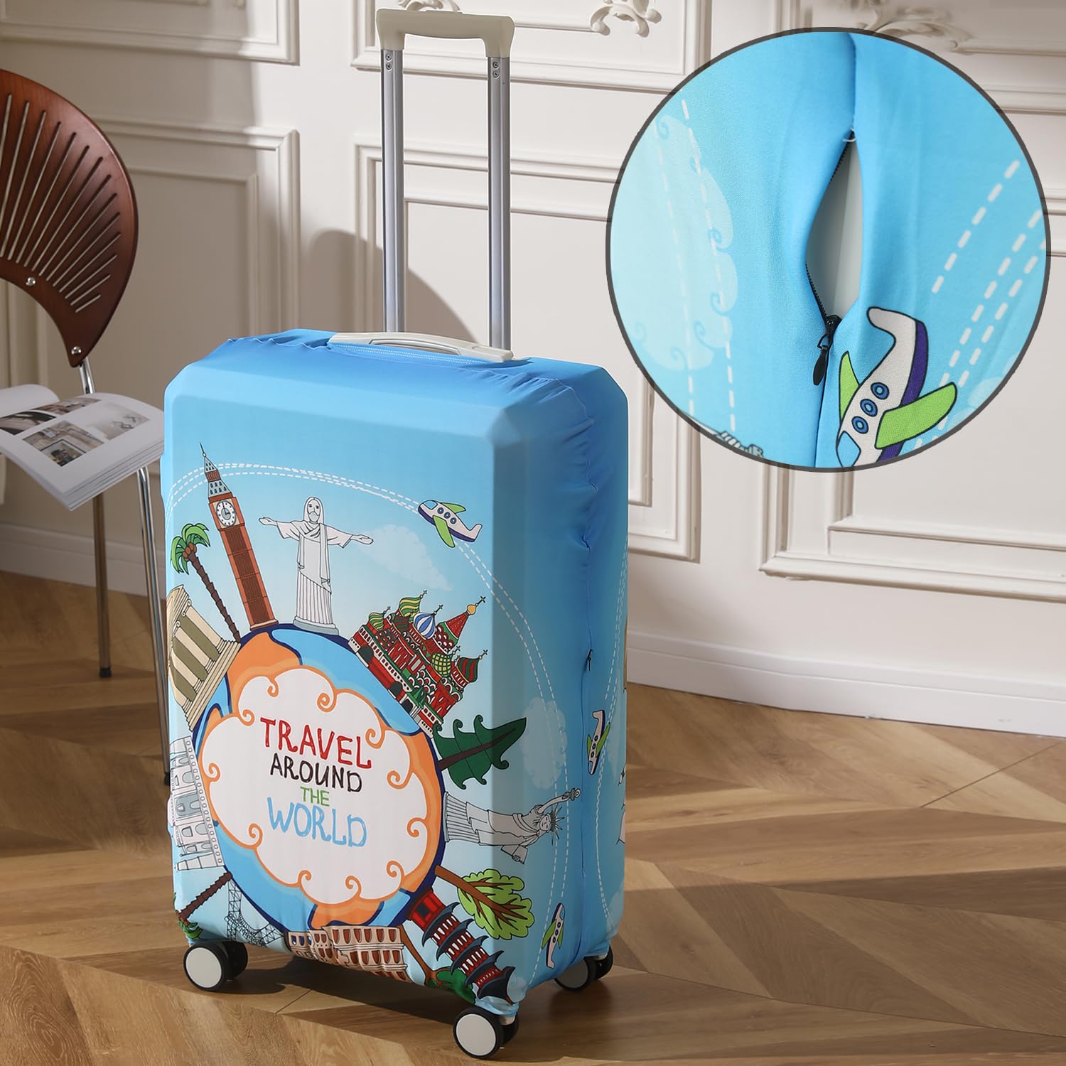 HOKIPO Luggage Cover: Durable, 180gsm stretched fabric, vibrant digital print, machine washable, available in three sizes with superior design, featuring adjustable buckles for the perfect fit, enhancing style and ease of luggage identification.