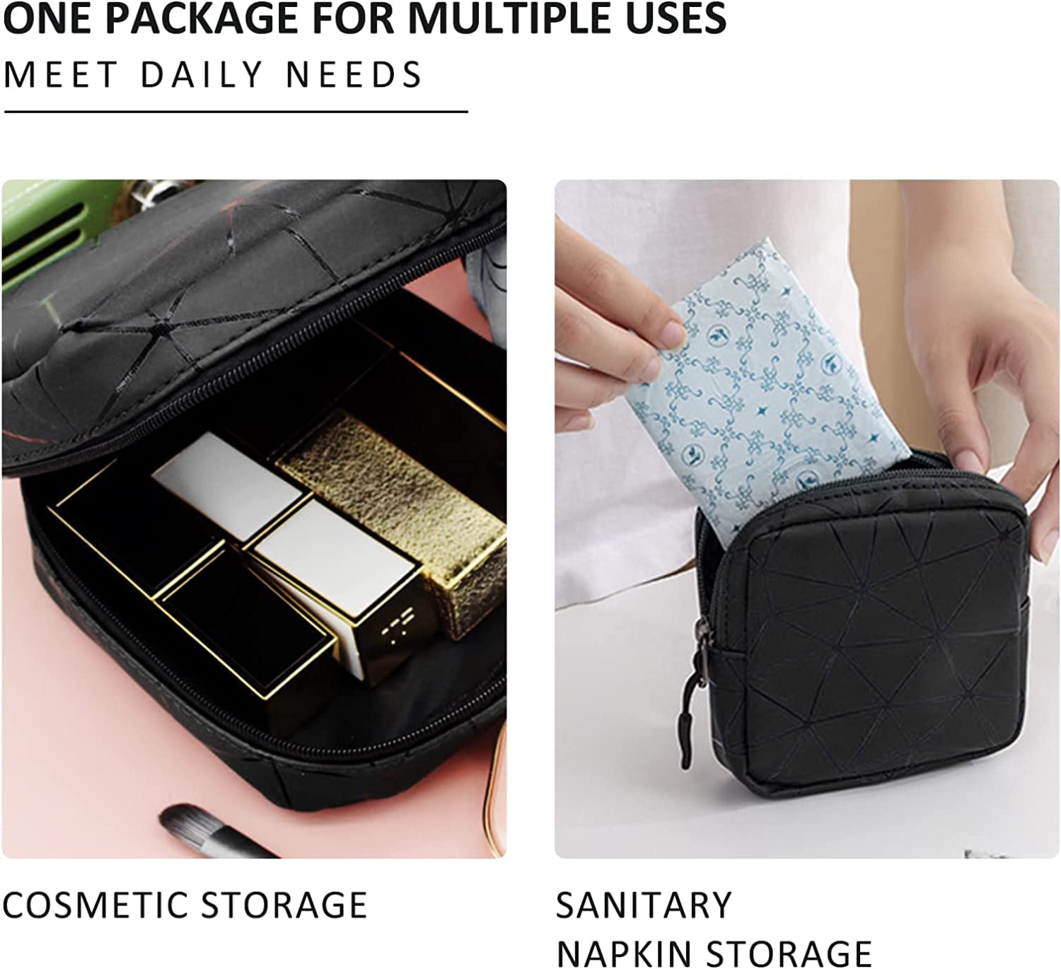 A wide range of applications: These storage bags with zipper are suitable for storing sanitary napkins, tampons, and can store jewelry, credit cards, etc.; These can not only be used as sanitary napkin bags but can also be used as coin purse, cosmetic bag or card case