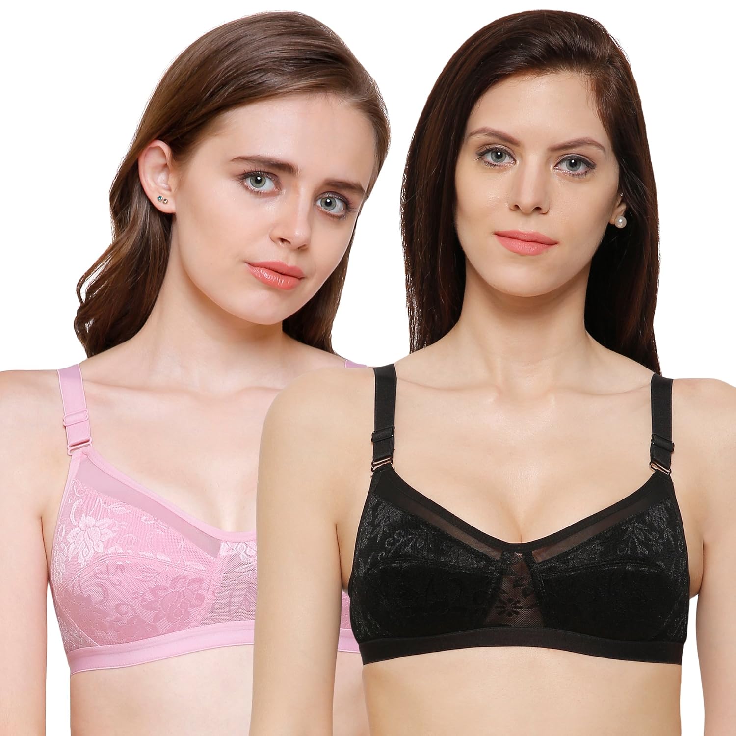 This is a non-padded pack of 2 bras that gives excellent support to your breasts. If you are one of those who experience side spillage or top spillage, this full-coverage bra is the ultimate solution to your problem. Paneled with net shaper on top, it gives you a stylish look. The cups provide maximum coverage and allow no leakage. This is an everyday wear bra and can be worn with all your formal, casual, western and ethnic outfits. The bra has non-wired cups and hence provides a poke-free experience. This is a full coverage bra for daily use that matches well with all your body-hugging outfits like t-shirts, fitted tops, one-piece dresses, etc. This bra also works well under blouses, kurtis, suits, sarees, anarkalis etc. This is a pack of 2 full coverage bras. Material Composition: Rich Micro Cotton, Polyamide and Spandex. The inner layer is of cotton blend fabric which is soft and feels exactly like baby clothes. The power net used on the top of the cups is stretchable and soft which provides the desired support to the breasts. INKURV is known for non padded non wired bras for daily wear. We provide the best fit and support all day long. Just remember to choose the right size. Available in pastel colours, this is a regular bra from Inkurv. Recommended for loose breasts, this bra is available in B, C and D cups in sizes 30B-40D.