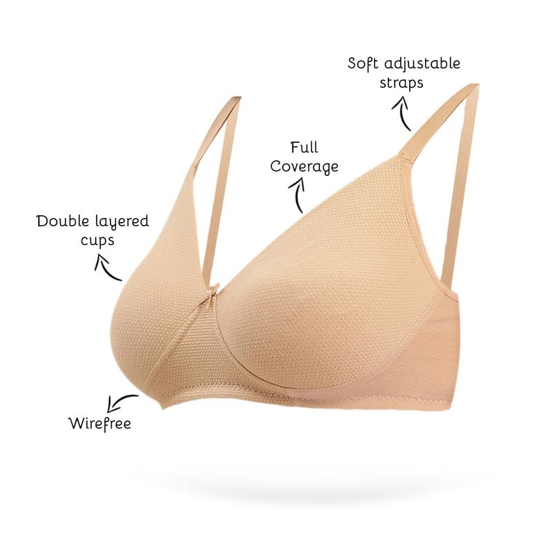 Introducing our thoughtfully crafted organic cotton and bamboo plus size bra for women, created by a woman, designed specifically for women, with a deep understanding of their unique innerwear needs and prioritizing comfort, support and stability. This wire-free, non padded bra for women provides you with amazing support and gentle hold like no other regular bra. It is suitable to wear under T-shirt. Raise your comfort to extraordinary levels and enjoy this bra for women with generously spacious cut and luxuriously soft texture that caresses your skin with every wear. Double layered, high coverage, smooth straps, anti-odor, anti-fungal bra for women that absorbs and evaporates sweat better than synthetic fabrics, keeping you feeling fresh all day long and making them suitable for everyday wear. With less stretch, the fabric provides more grip. 4% elastane, 48% bamboo and 48% organic cotton were used in the manufacturing of this bra. Empower your inner confidence by revolutionizing comfort, combining fashion and functionality with the Inner Sense women’s bra.