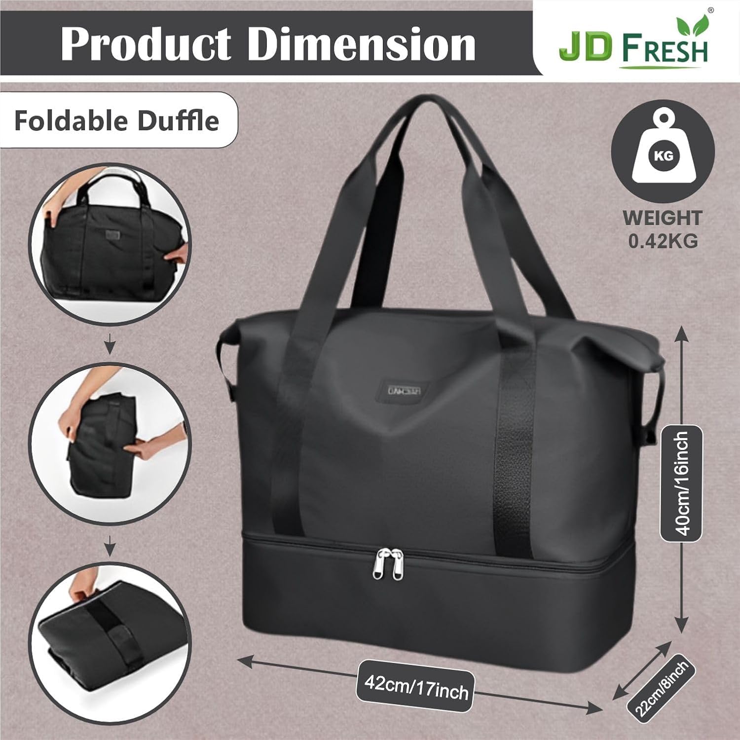 𝗘𝘅𝗽𝗮𝗻𝗱𝗮𝗯𝗹𝗲 : With a normal size of 40 x 22 x 30 cm and an extended size of 40 x 23 x 45 cm (41.4 L), this foldable duffel bag suits your packing needs, offering versatility for both short and extended trips.