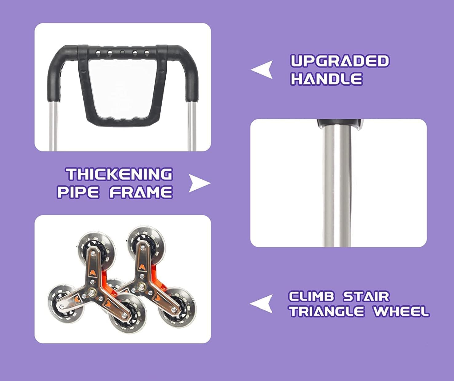 - 8 durable wheels: Features a unique 8-wheel design including a 360° rotating front wheel and triangular stainless-steel rear wheel for improved mobility and stair climbing.