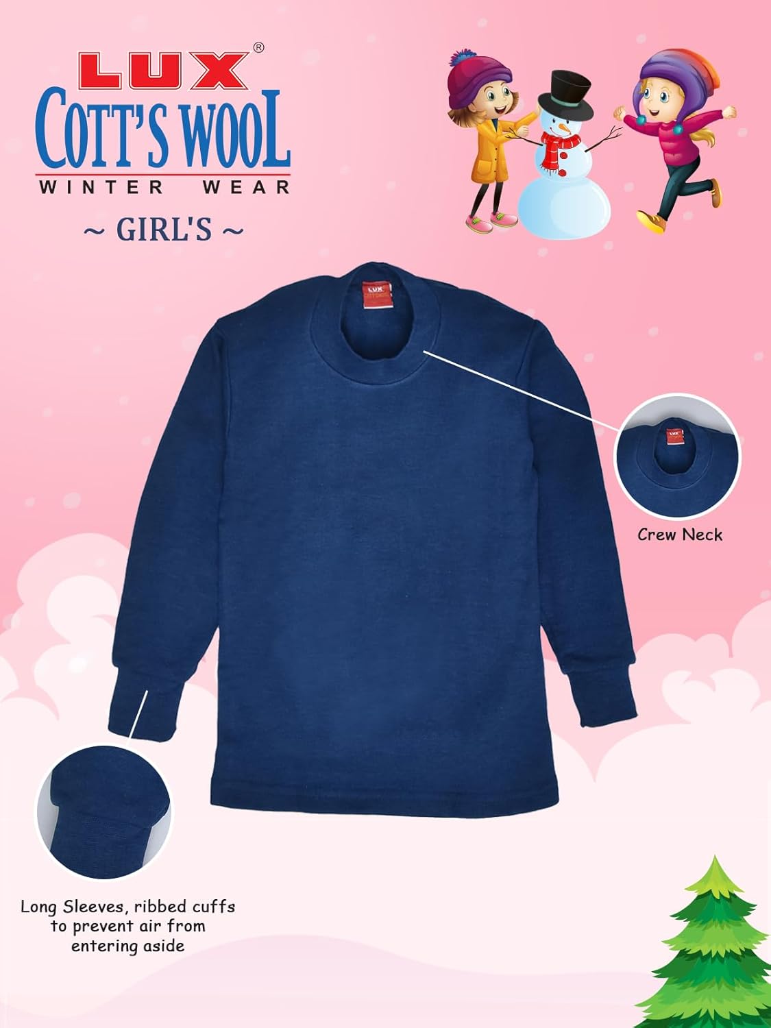 Manufacturer : Lux Cotswool Girls Pack of 1 Blue Winter Wear Thermal Full Sleeve Round Neck Body Warmer Top (Size : 50 cm), Lux Industries Limited