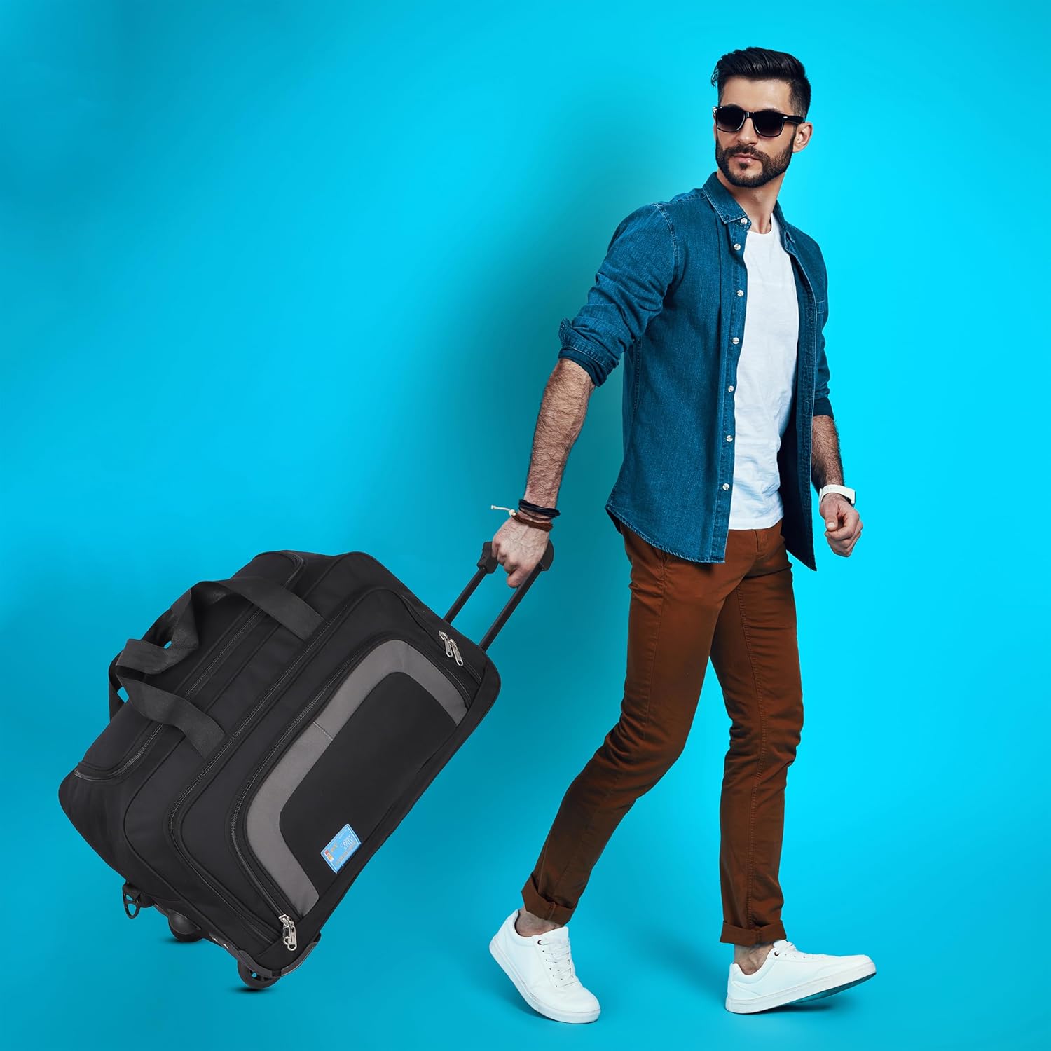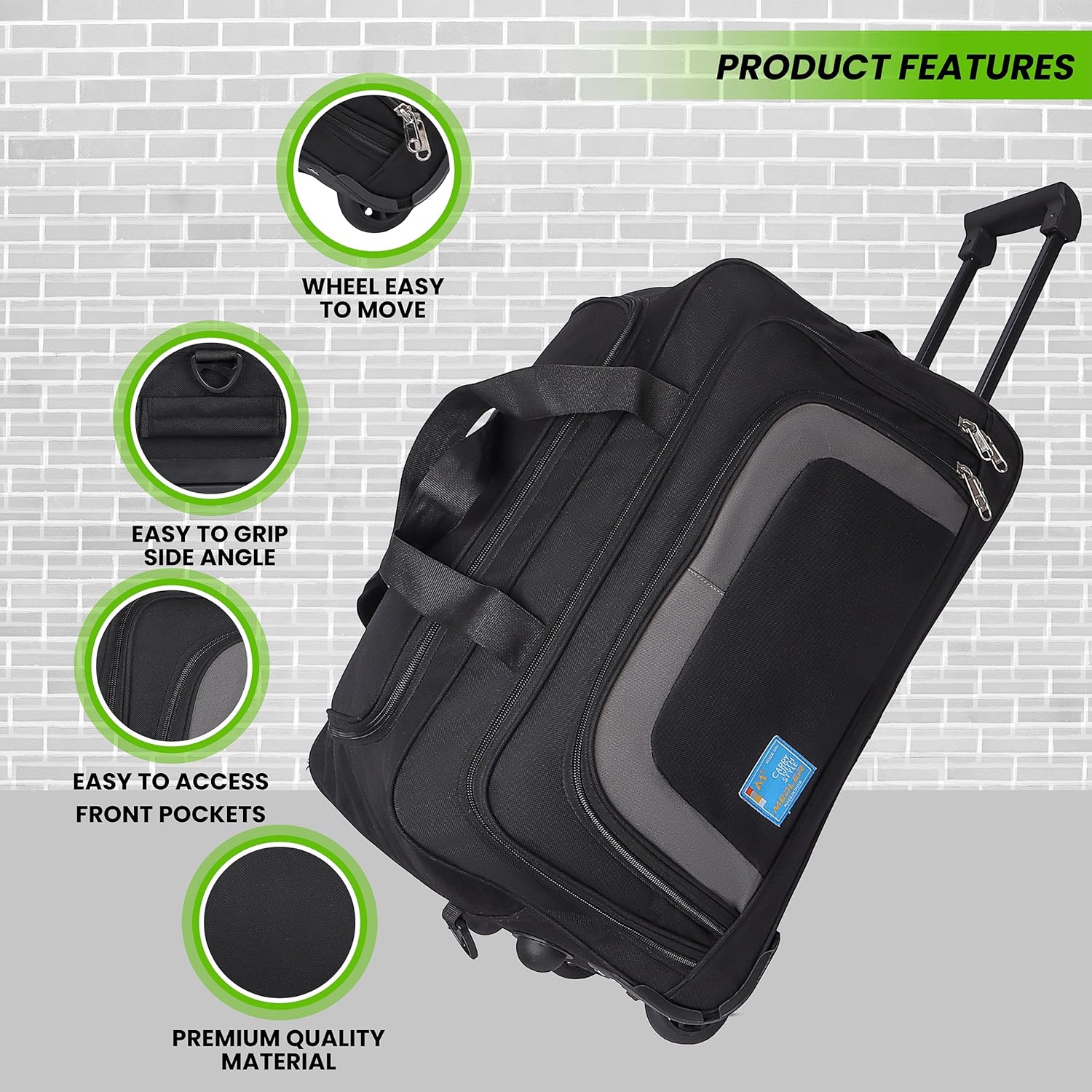 It is constructed using polyester, a durable and water-resistant material. This ensures that the contents of the bag remain protected from moisture during travel or adverse weather conditions. Number of Wheels: 2, Number of Carts: 3; Laptop Compatibility: No, Strap Type: Adjustable